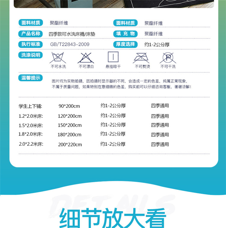 商品名称:学生宿舍床垫夏季夹棉软垫水洗保护垫0.9m防尘酒店薄垫家用 云朵飘飘