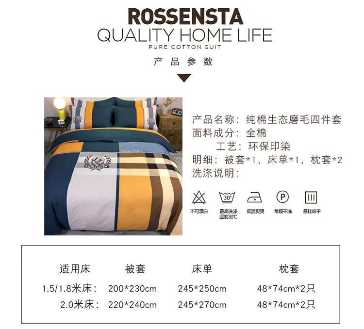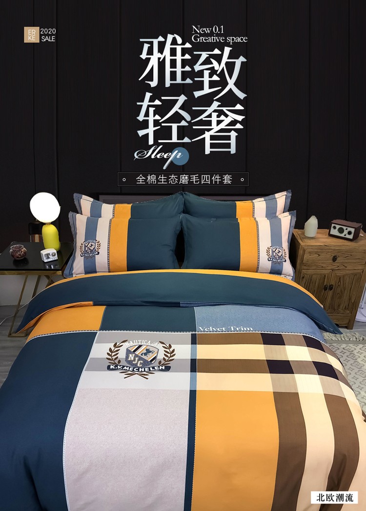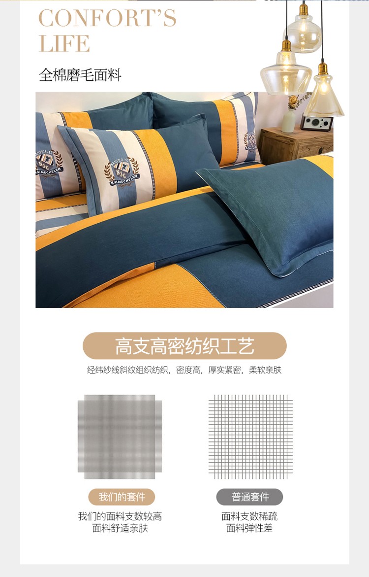商品名称:金爱家 2021新款纯棉生态磨毛四件套 北欧潮流