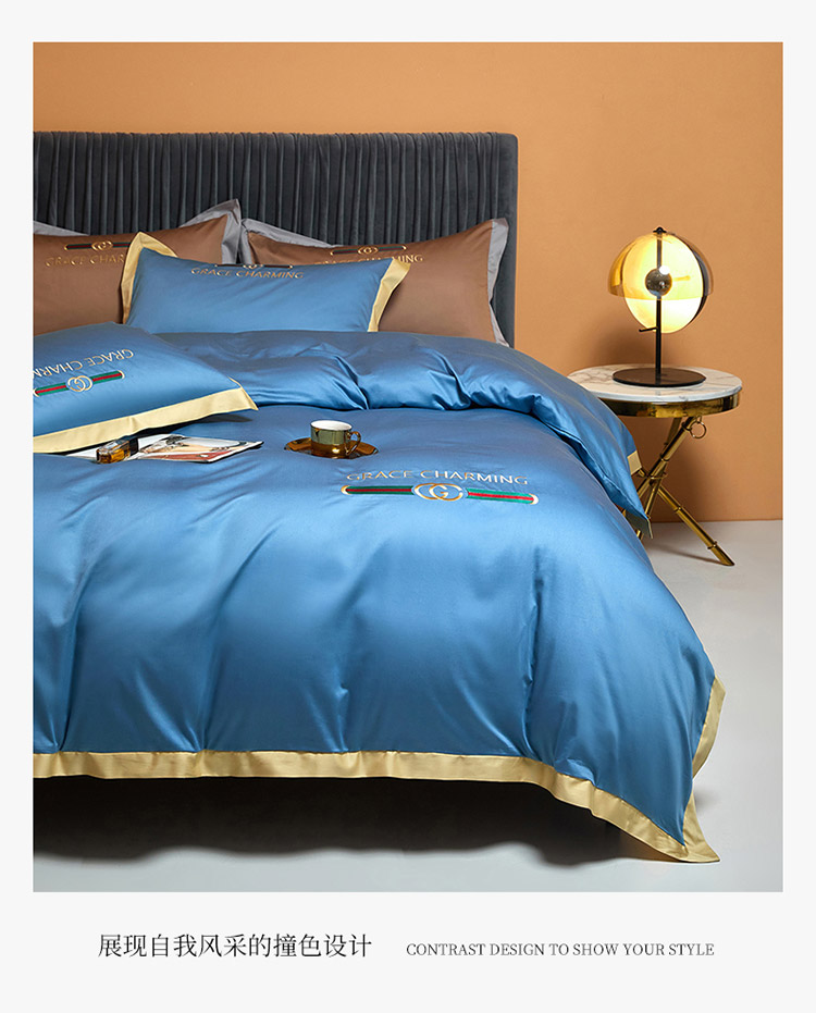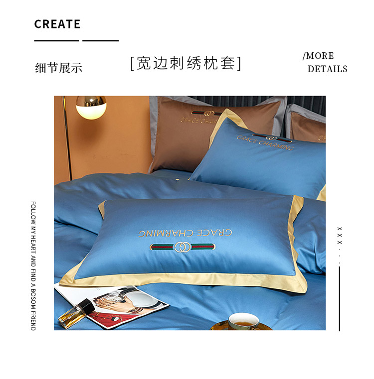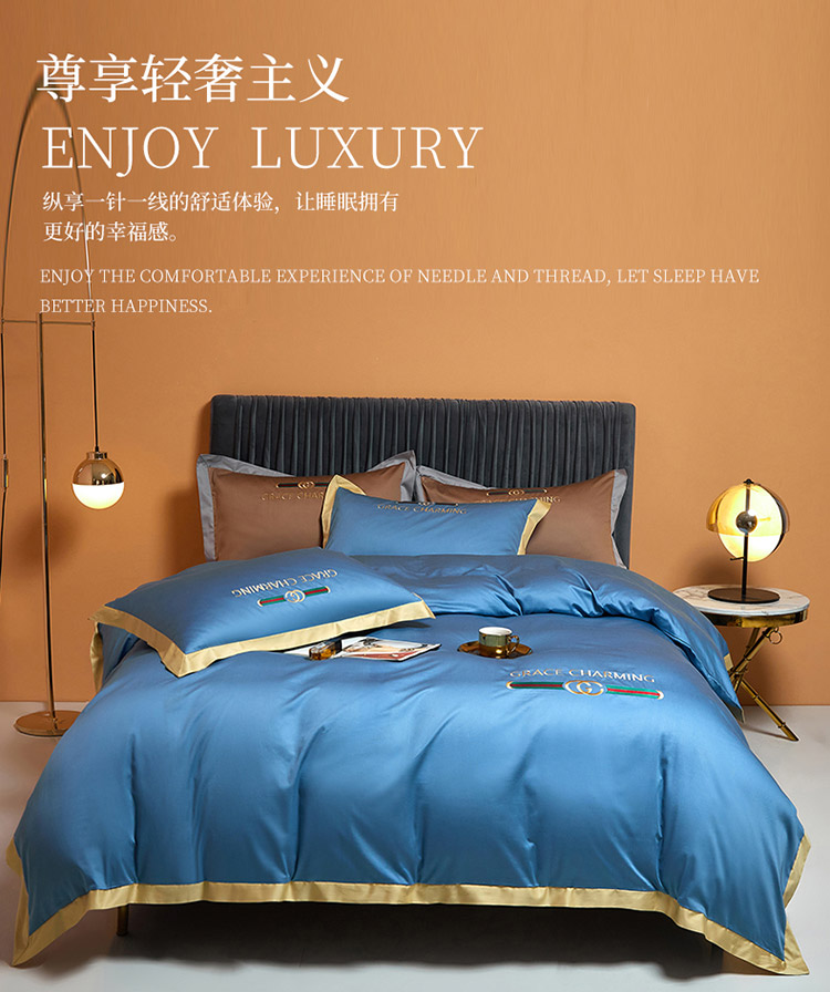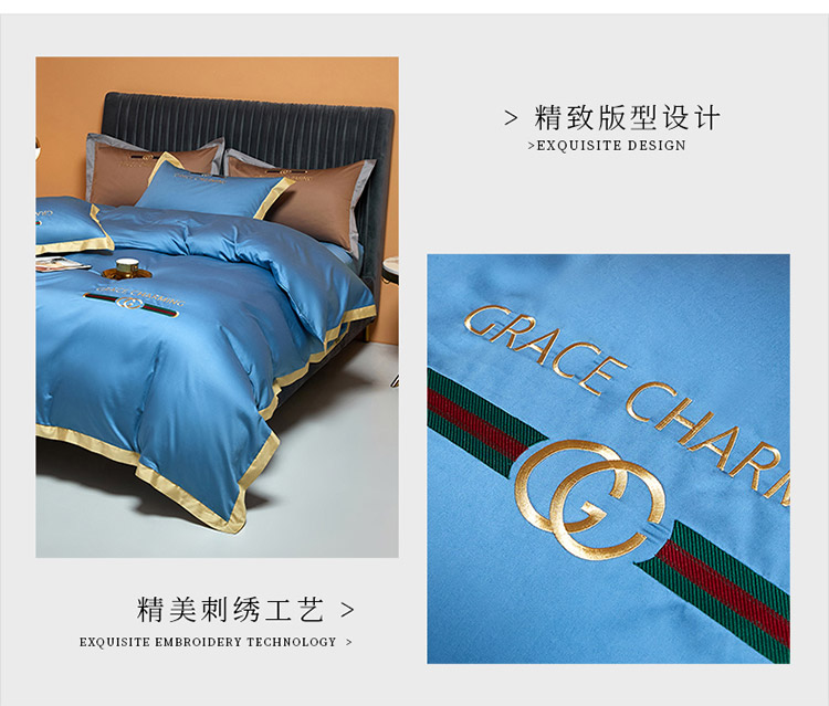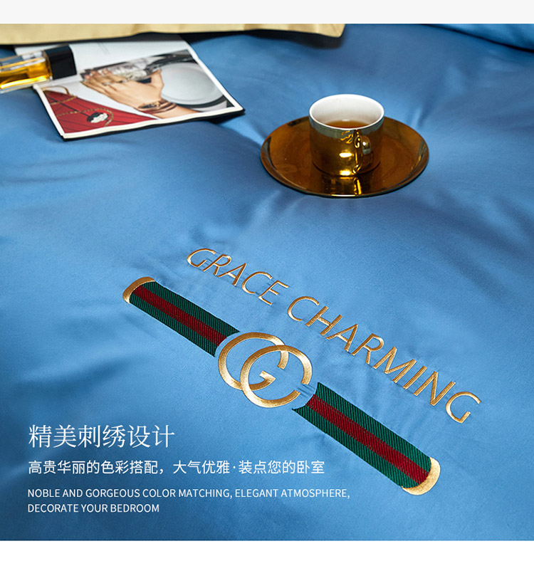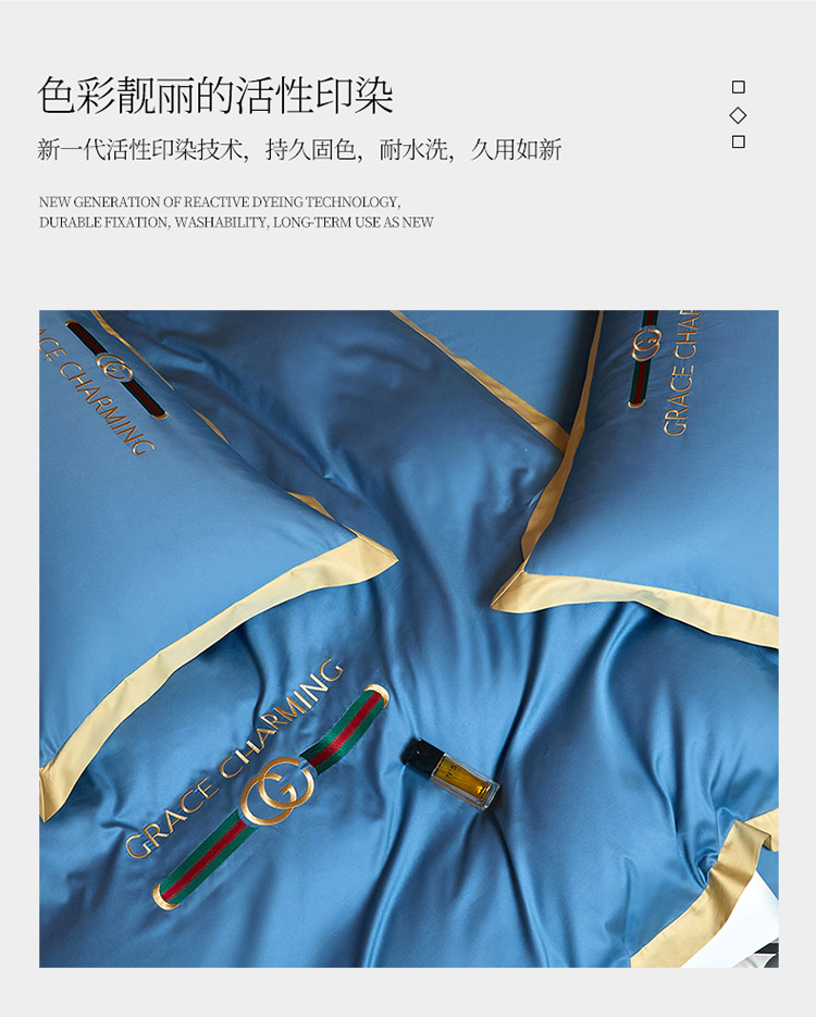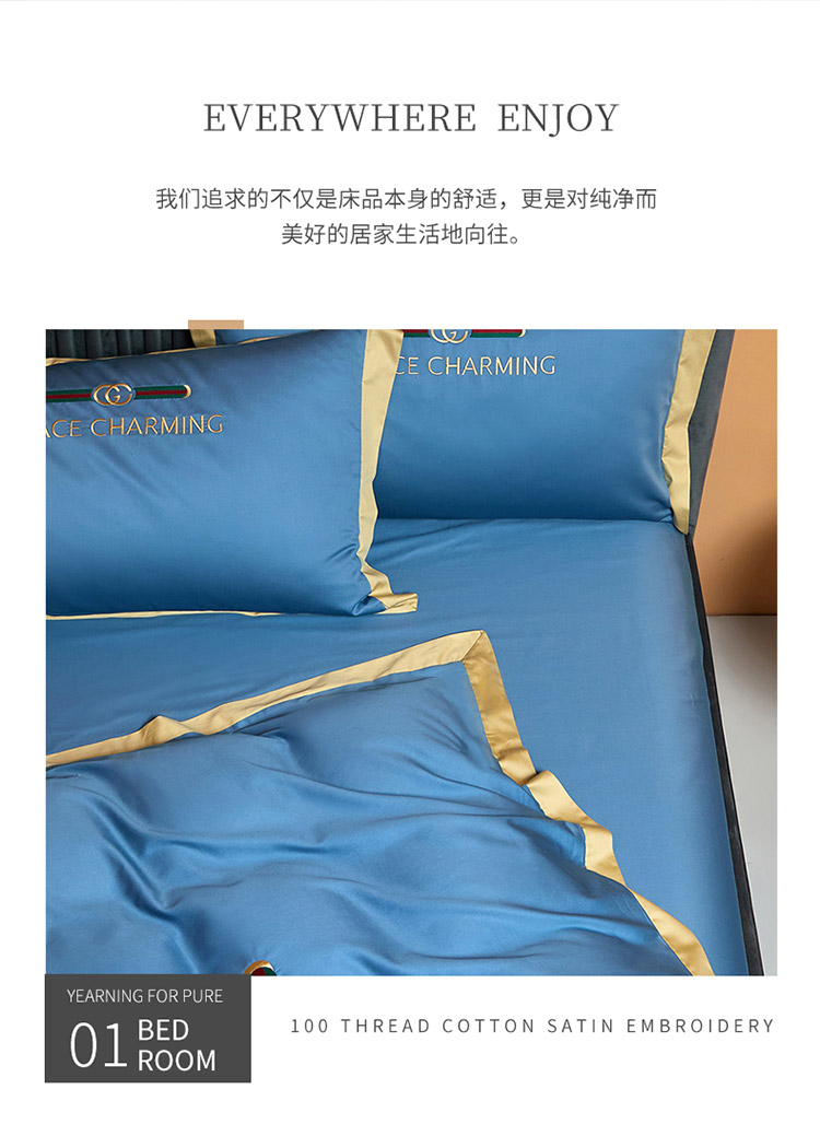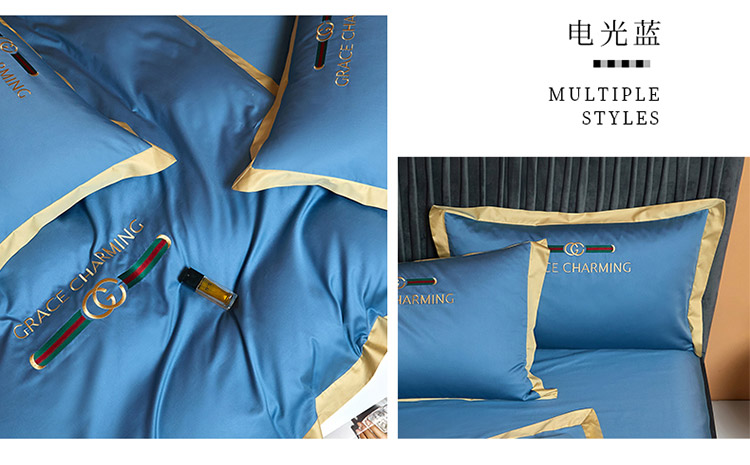 爱缦 2021新款格蕾丝棚拍100支澳棉四件套 电光蓝