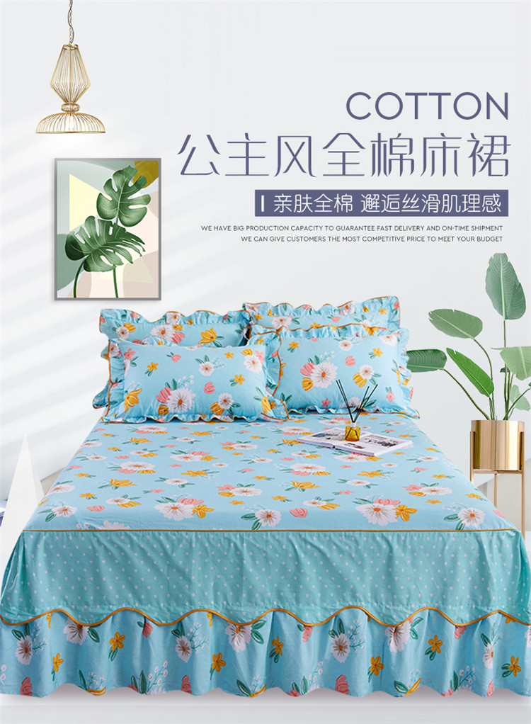 • 91家纺网 家纺一手货源 找家纺 十个点 2021新款弯边床裙 玉香妃-蓝