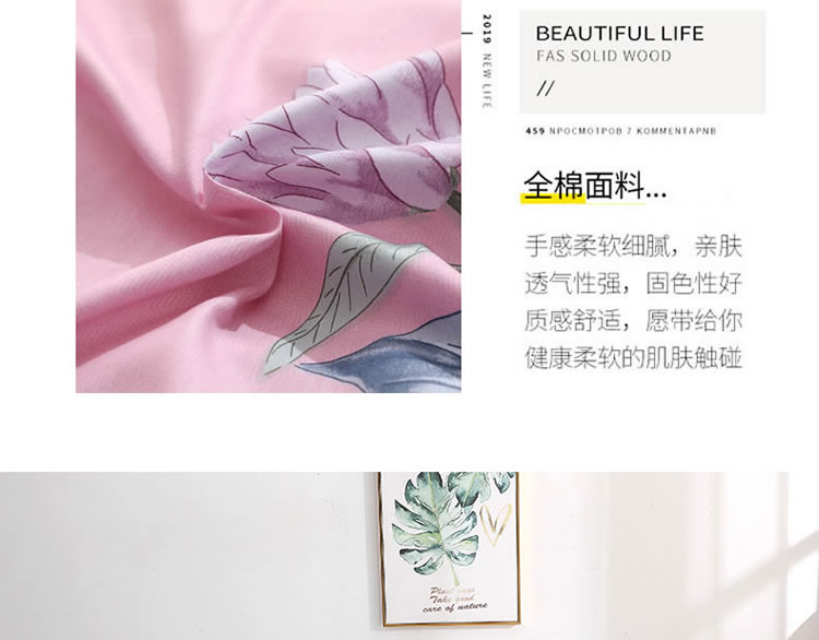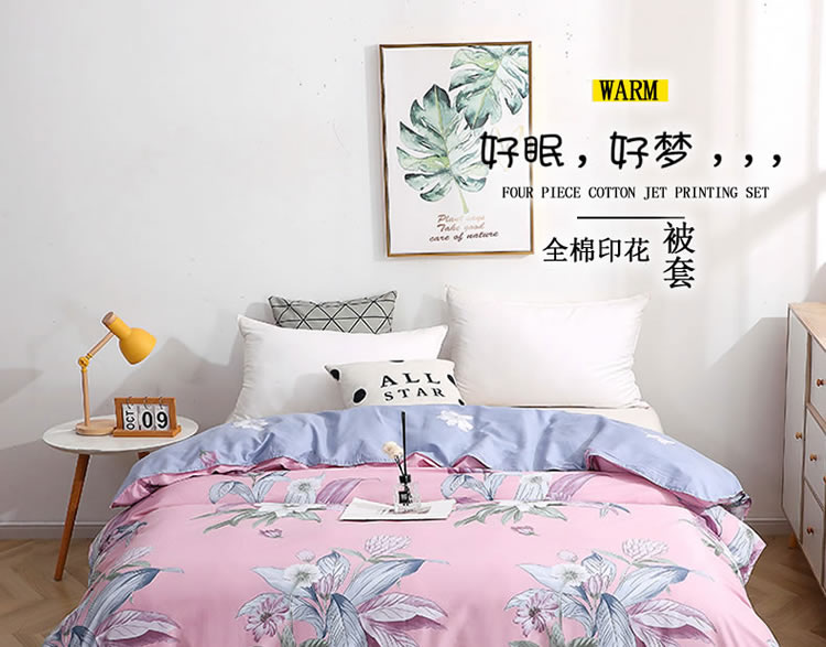 商品名称:晶缦家纺 2021新款秋冬款全棉12868单被套 沐雅清风粉