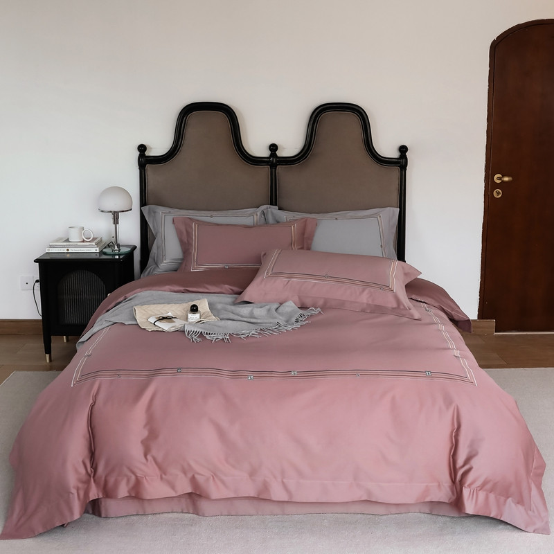 (总)时亿 2023新款100支长绒棉四件套心晴,心晴-粉,心晴-灰,心晴-蓝