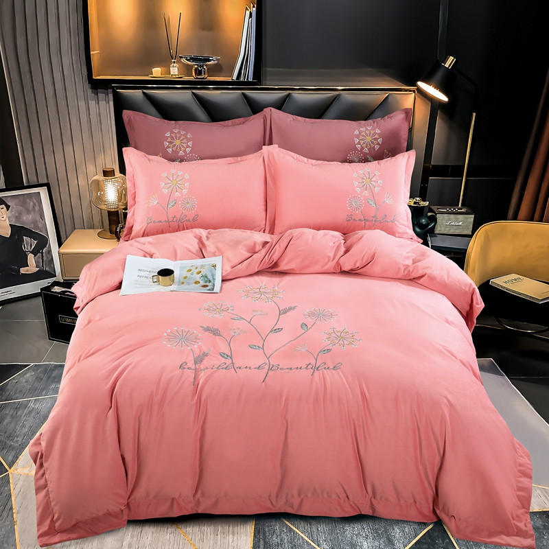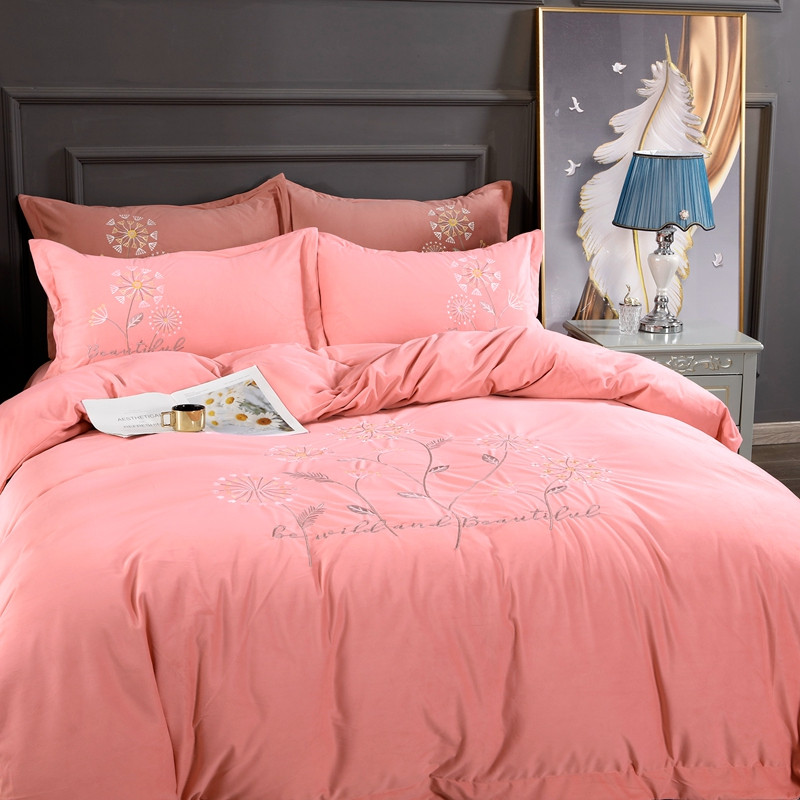 (总)玖玖爱家纺 2023新款120支贡缎长绒棉刺绣梦柔系列四件套,梦柔-香槟金,梦柔-香橙桔,梦柔-高级灰,梦柔-水蓝,梦柔-芙蓉玉