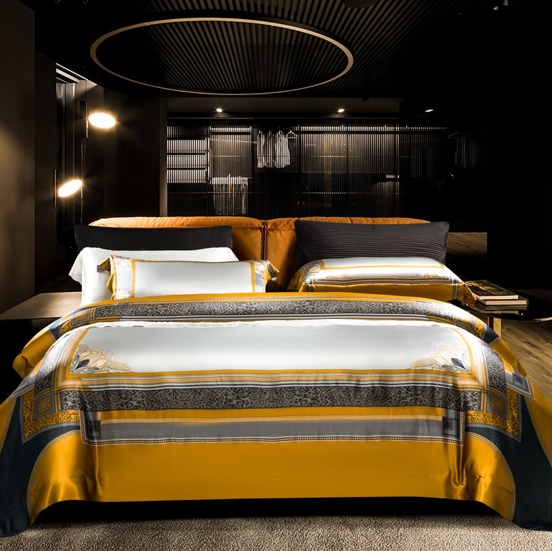 (总)雅韵诗真丝馆 2023新款全棉色织提花四件套(不退换),色织提花金色年华,色织提花蔚蓝,伊丽莎白孔雀蓝,伊丽莎白香槟金,泽西
