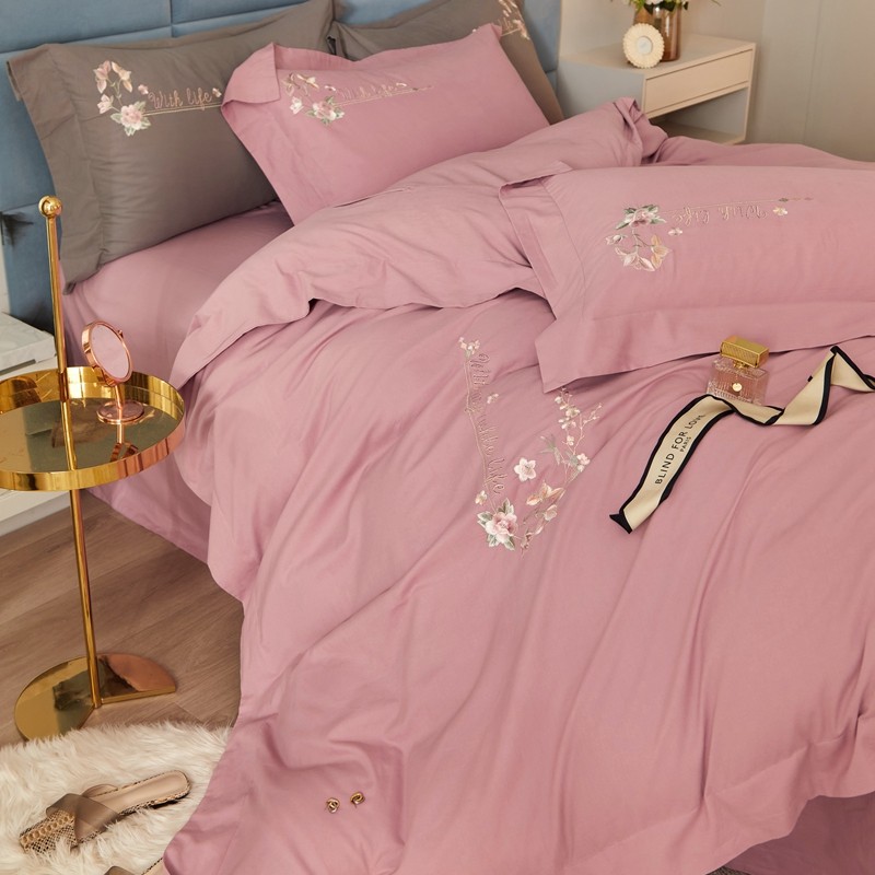 商品名称:威克凯丽秋冬绣花3221磨毛四件套布鲁斯系列布鲁斯-紫豆沙