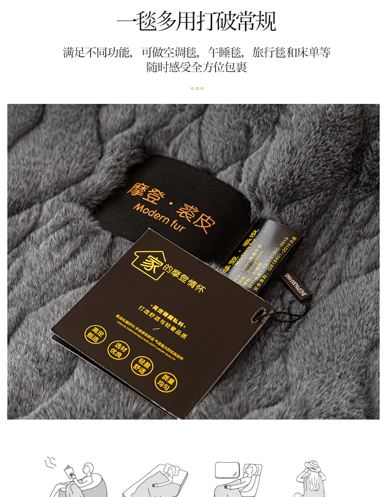 商品名称:凯轩毛毛毯毯子 仿裘皮毛毛毯毯子 绅士灰