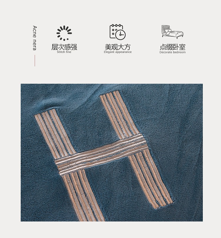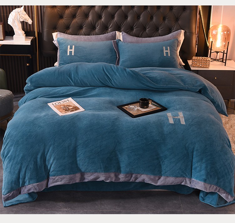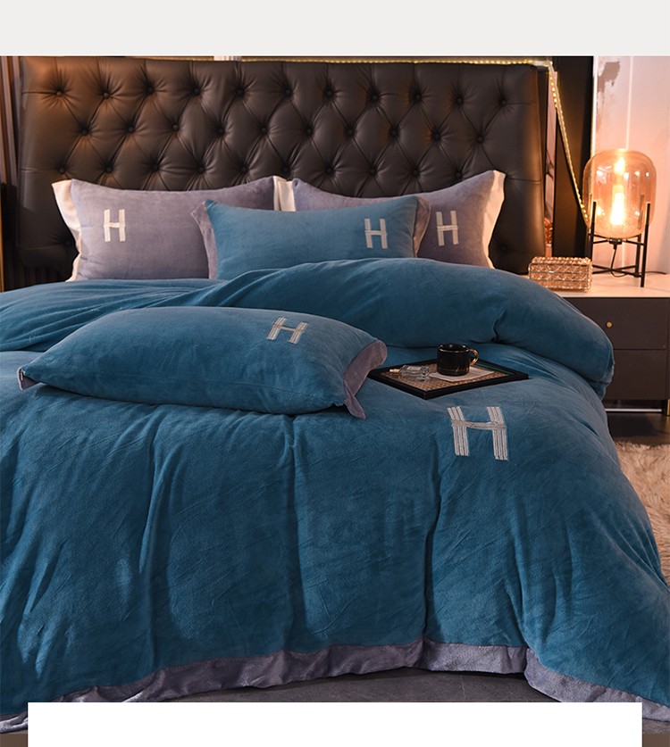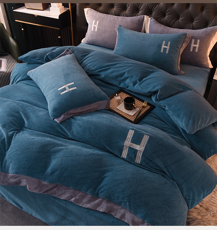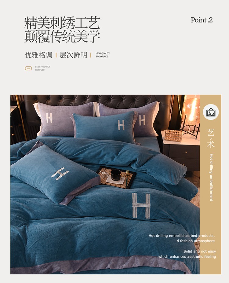 商品名称:艾米家居 2021新款牛奶绒刺绣H款四件套 深蓝