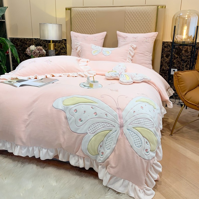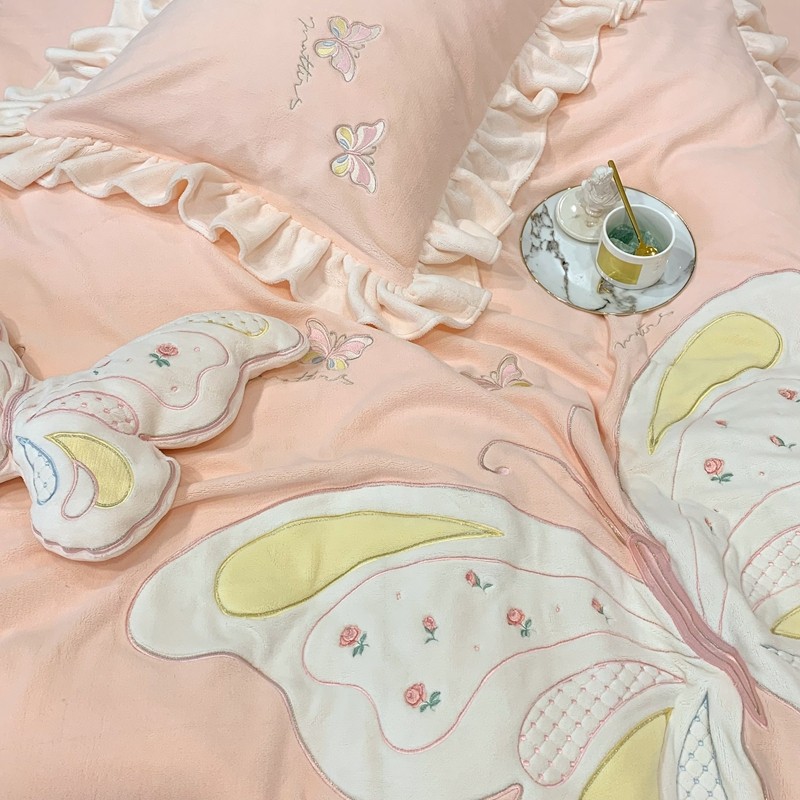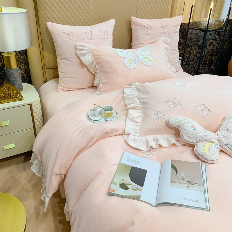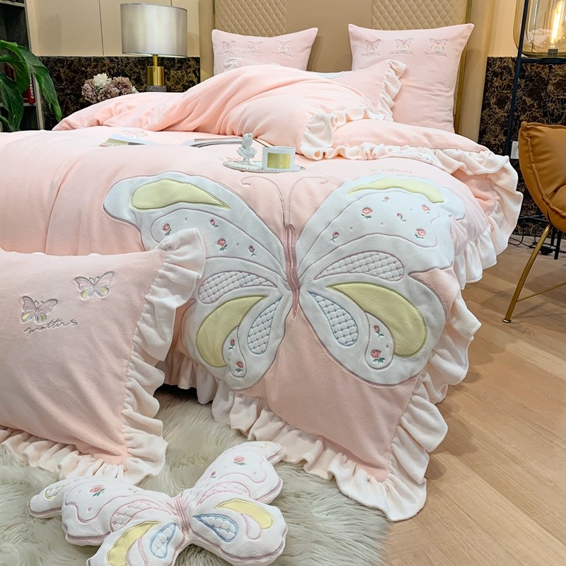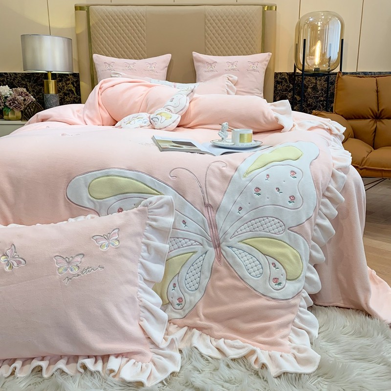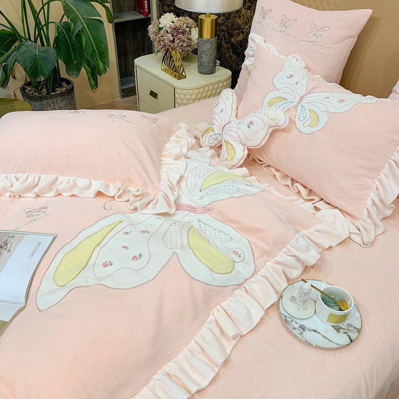 星尚 2021新款A类进口牛奶绒加厚水晶绒绣花四件套 翩翩起舞-淡粉