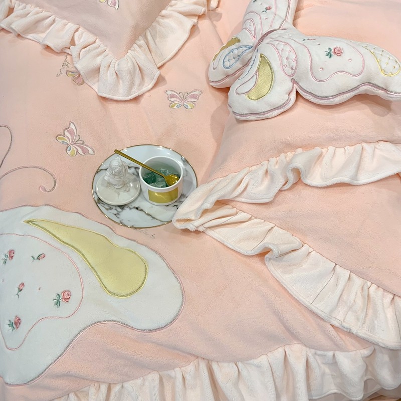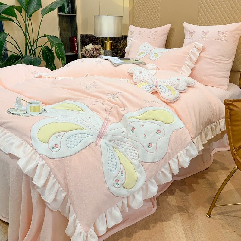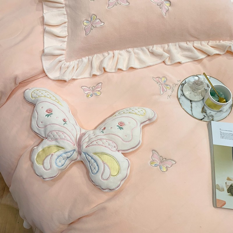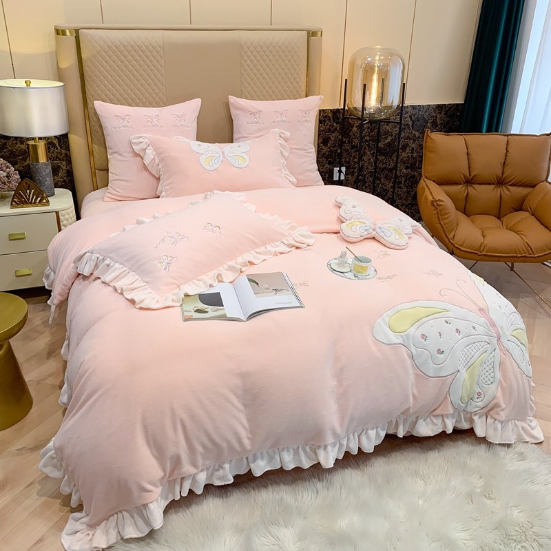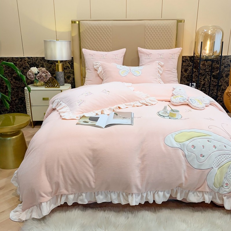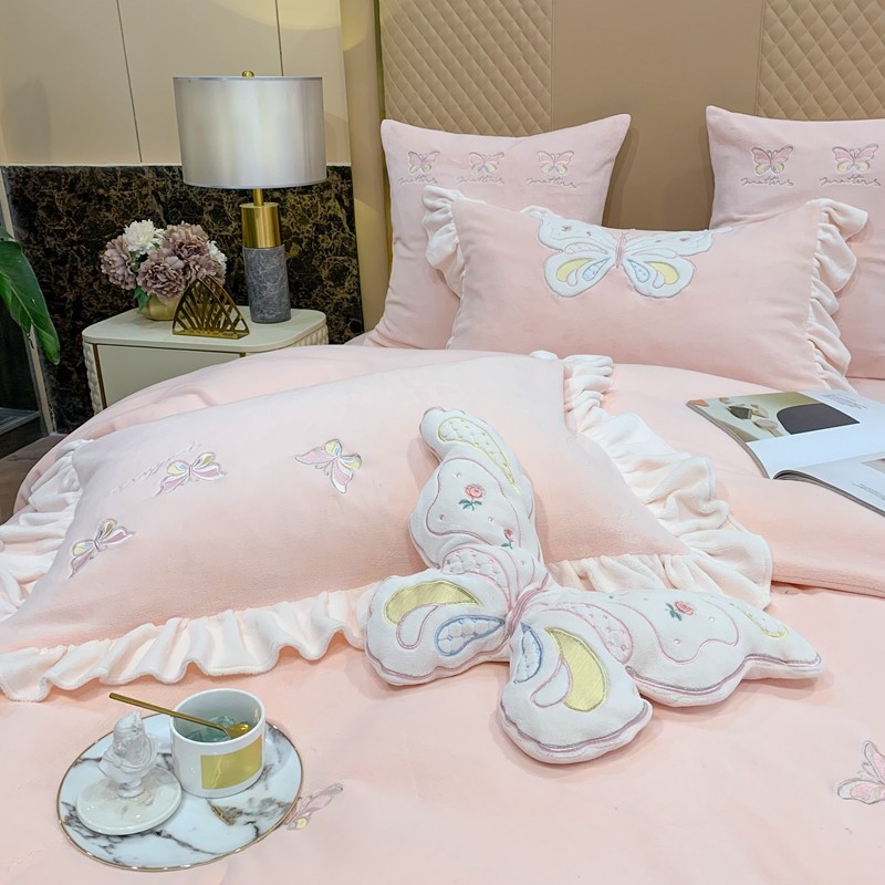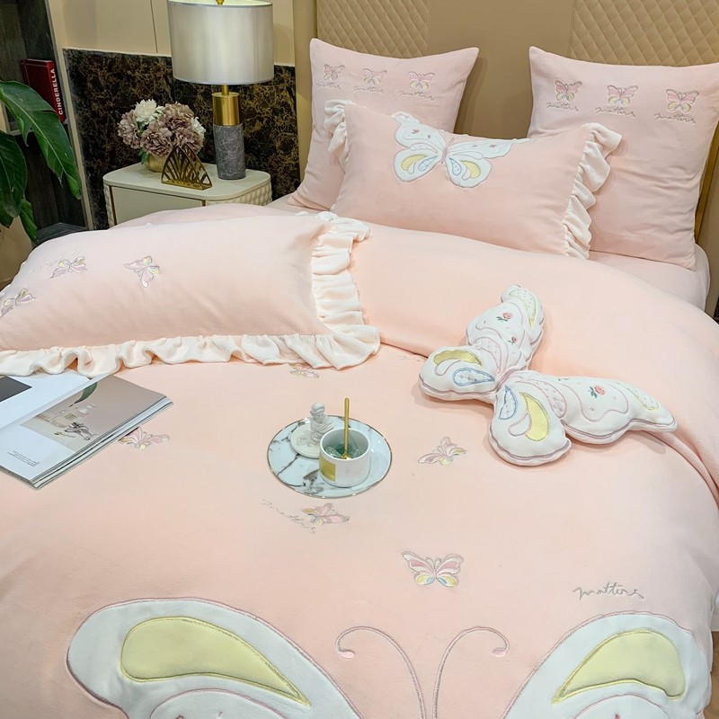 星尚 2021新款A类进口牛奶绒加厚水晶绒绣花四件套 翩翩起舞-淡粉