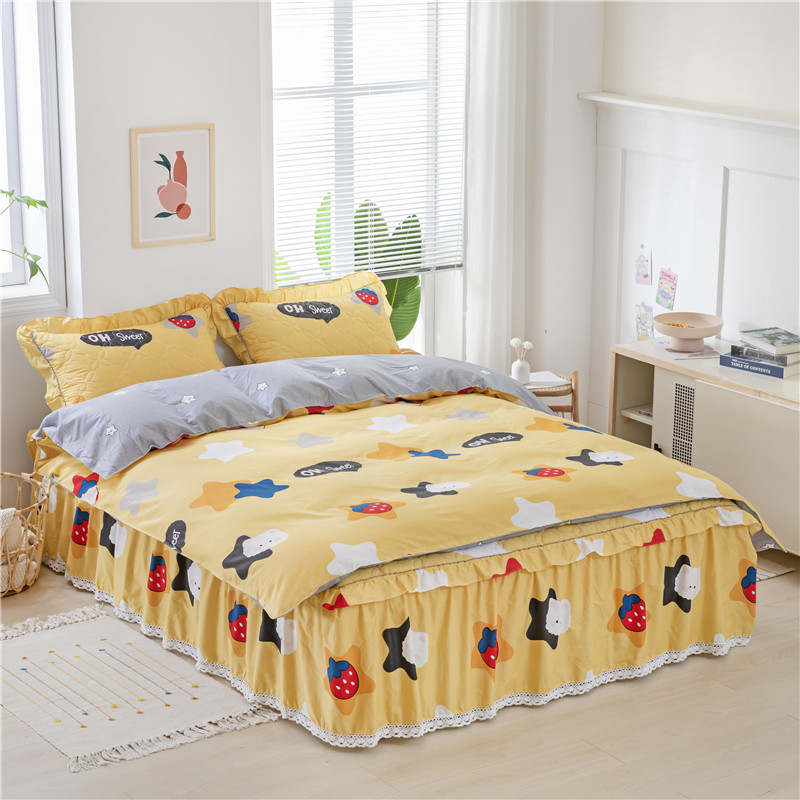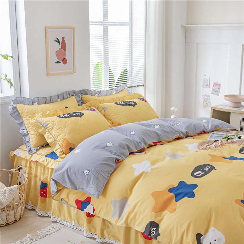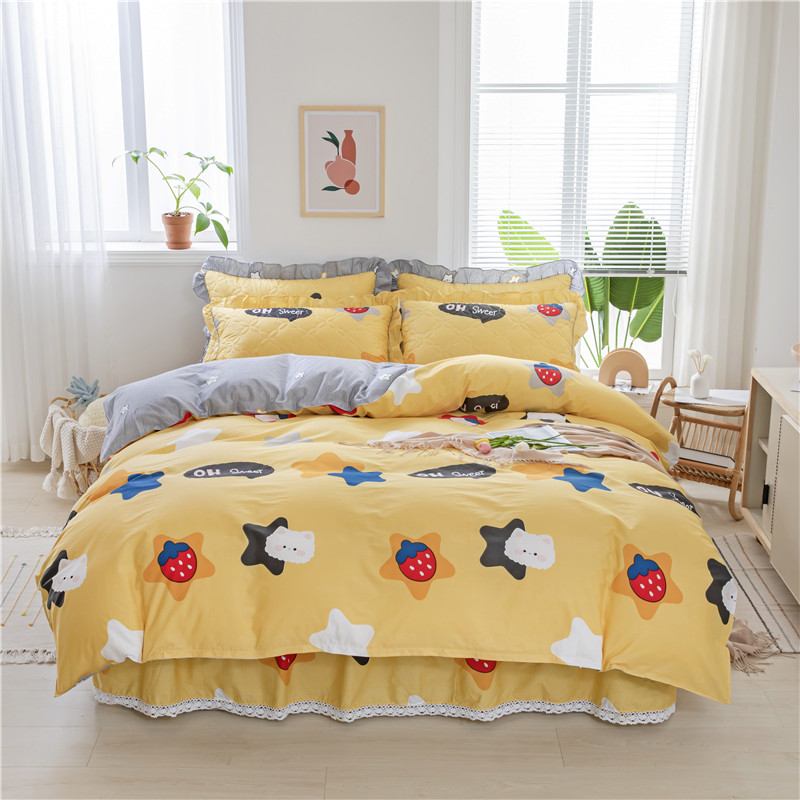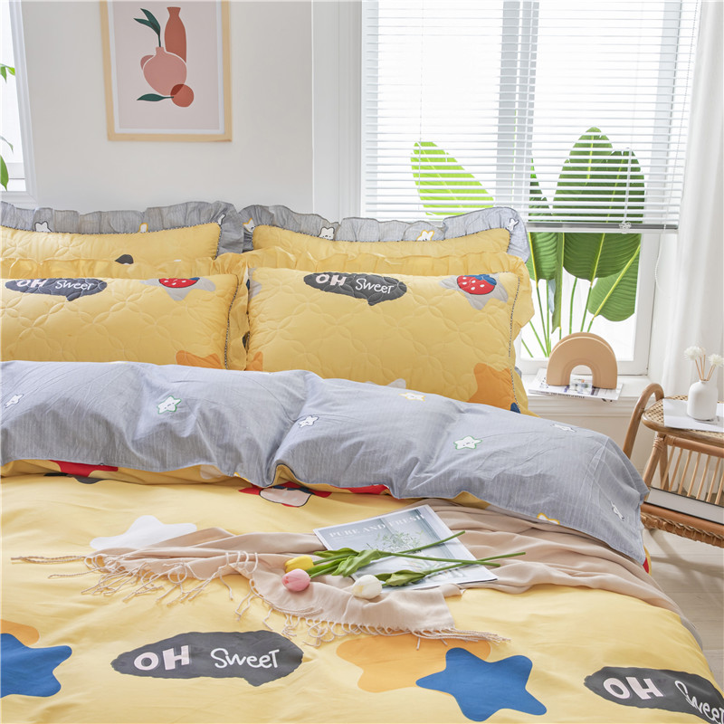 商品名称:纽缦 2021新款上下边夹棉四件套 喵星球黄