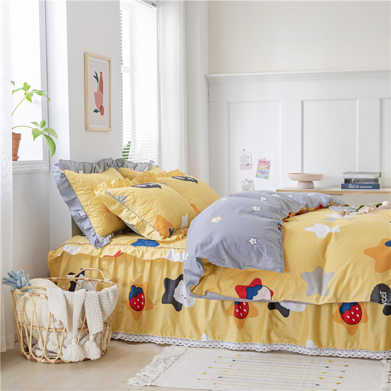 纽缦 2021新款上下边夹棉四件套 喵星球黄