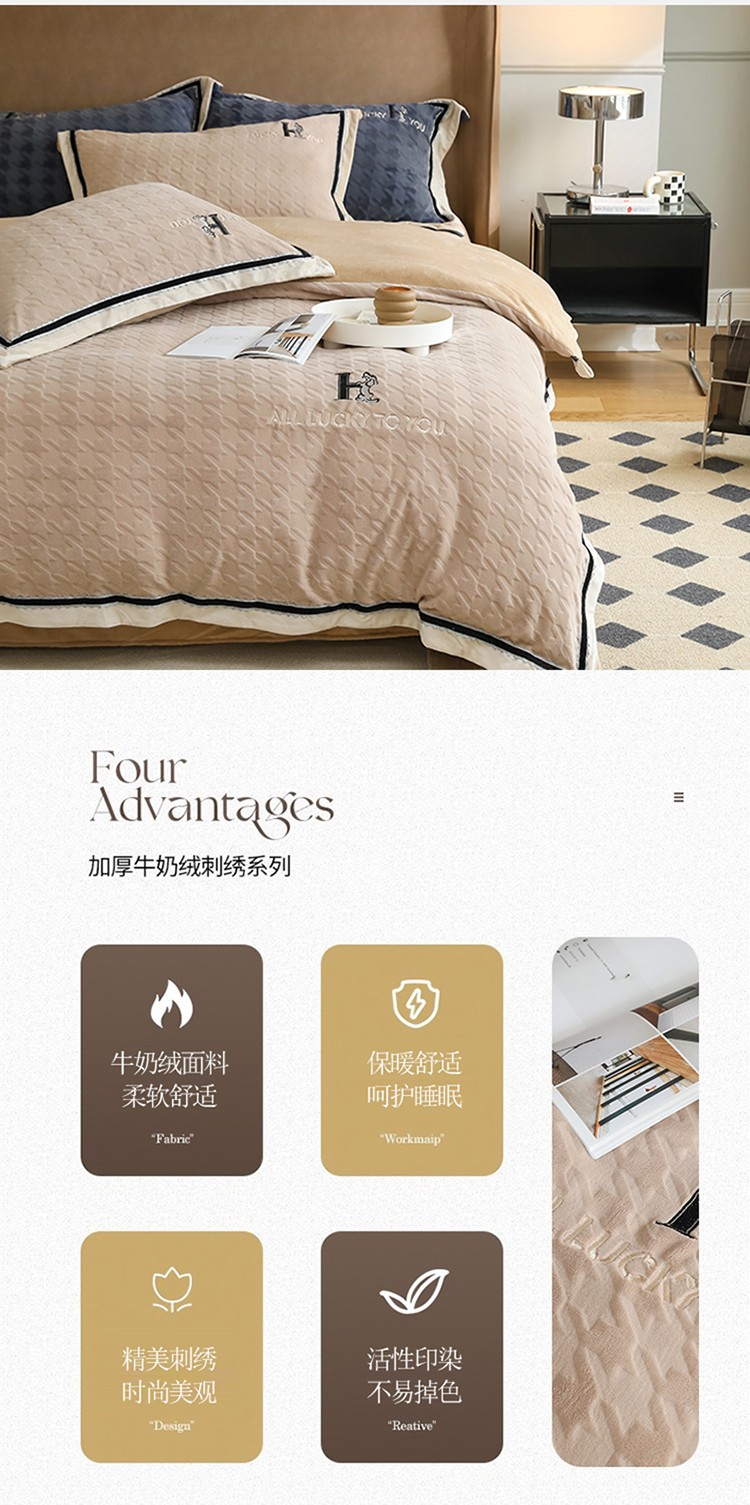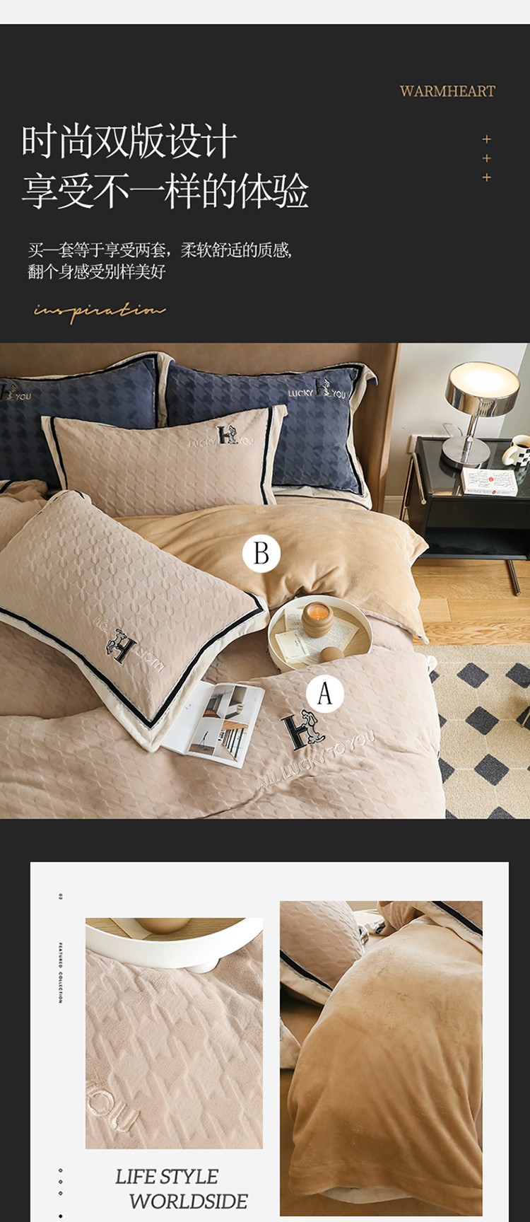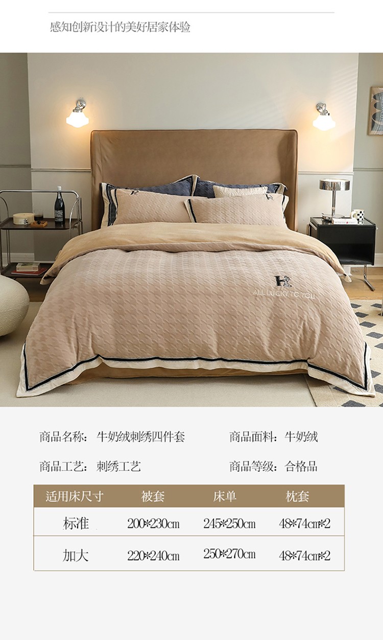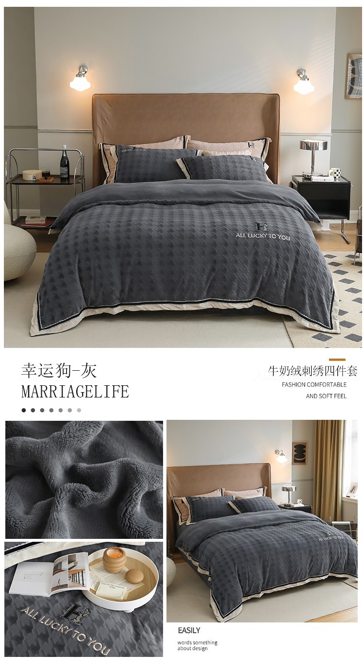商品名称:总源启生活 2021新款高克重牛奶绒剪花千鸟格四件套-幸运狗
