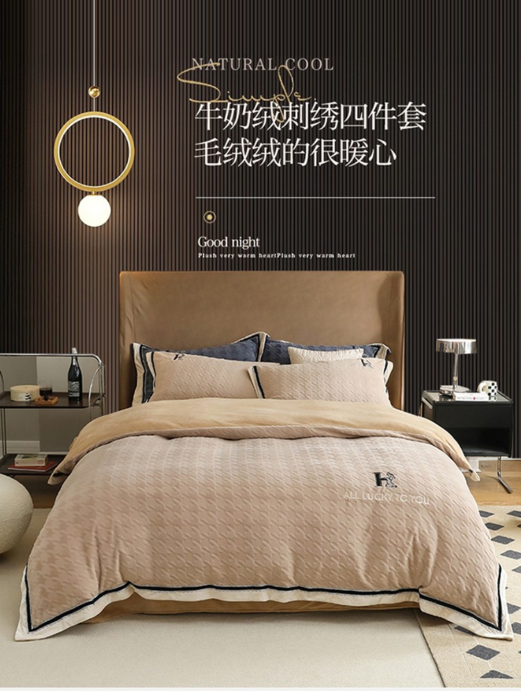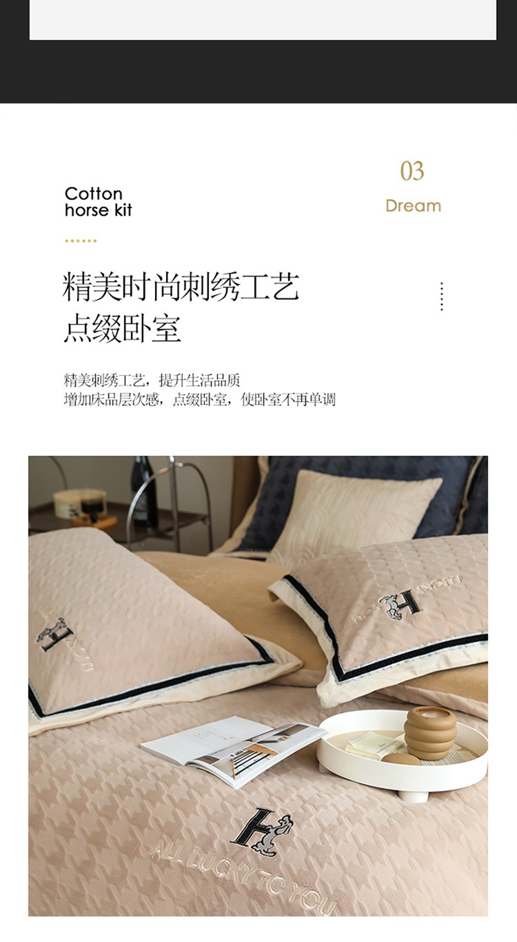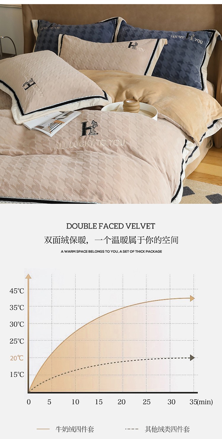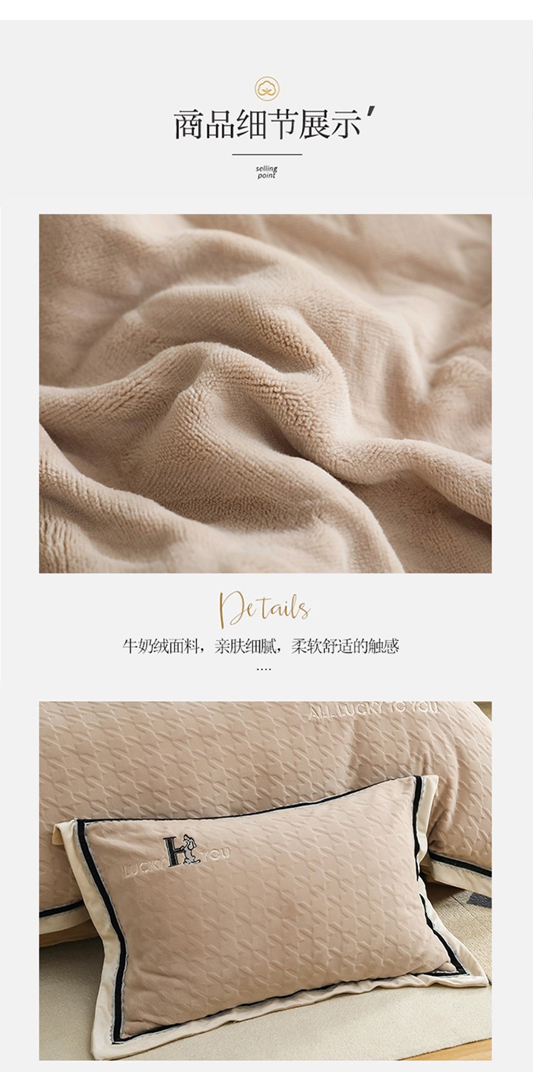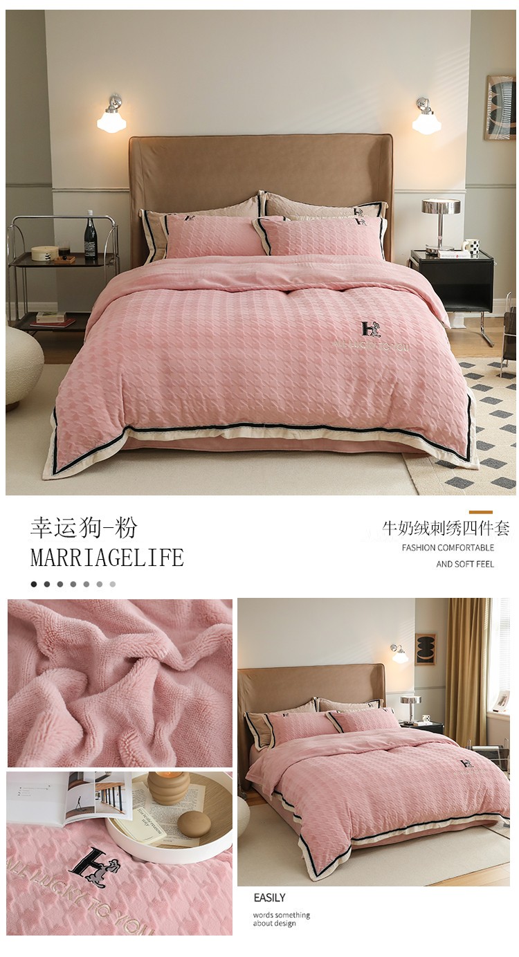 商品名称:总源启生活 2021新款高克重牛奶绒剪花千鸟格四件套-幸运狗
