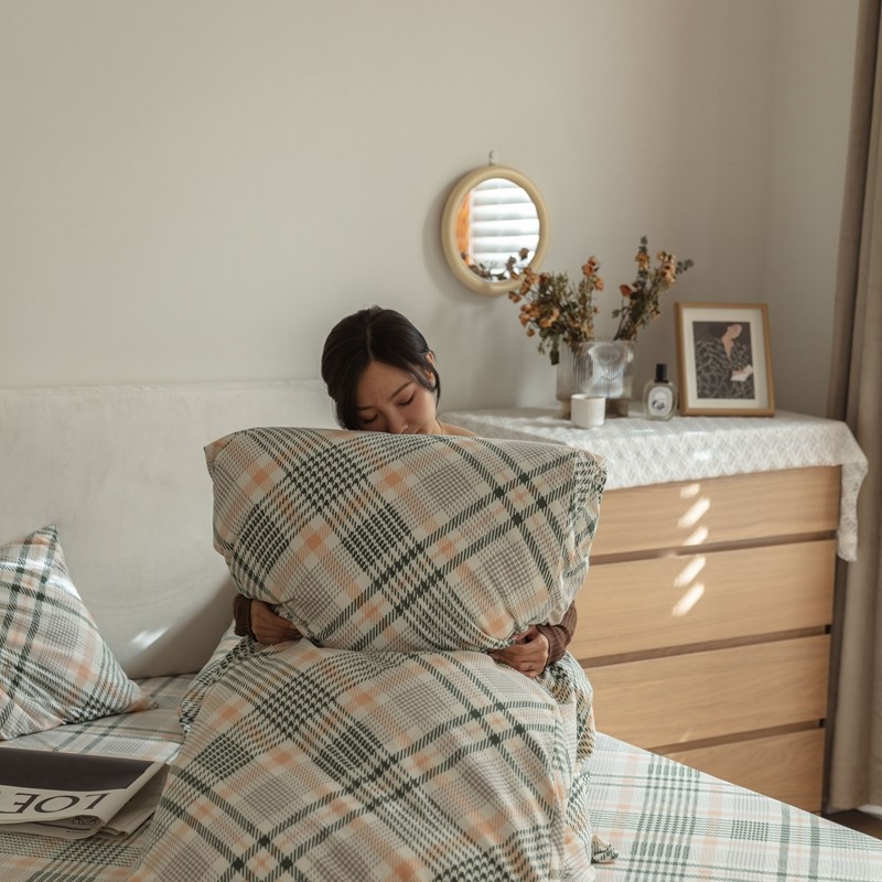 寐眠 2021新款全棉磨毛印花被套 遇见-千鸟格绿