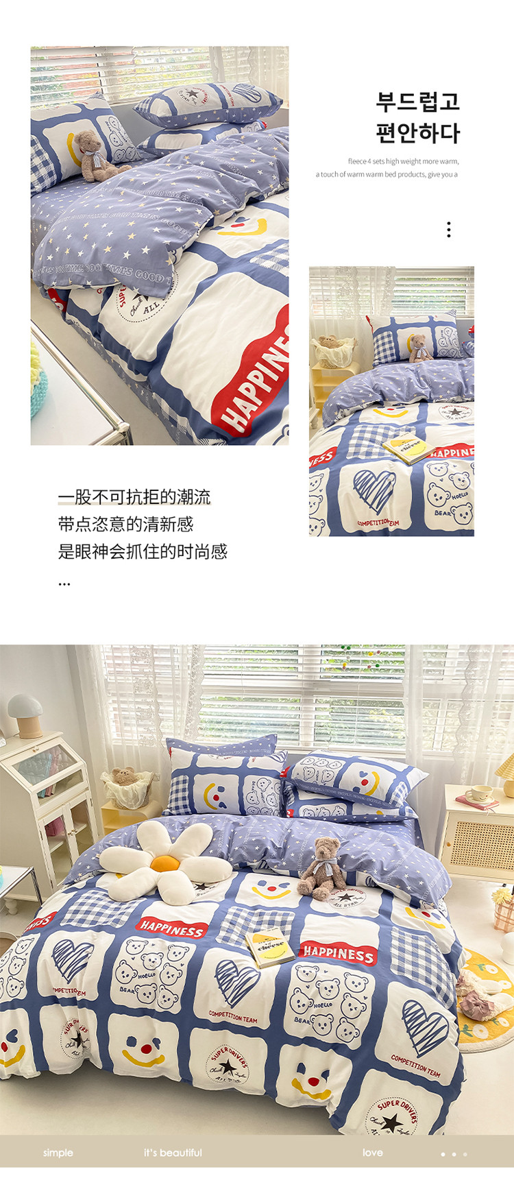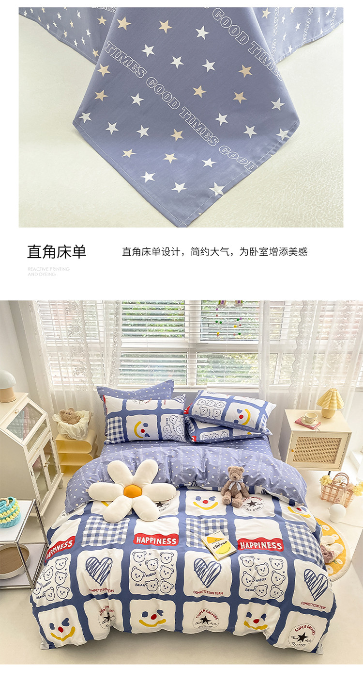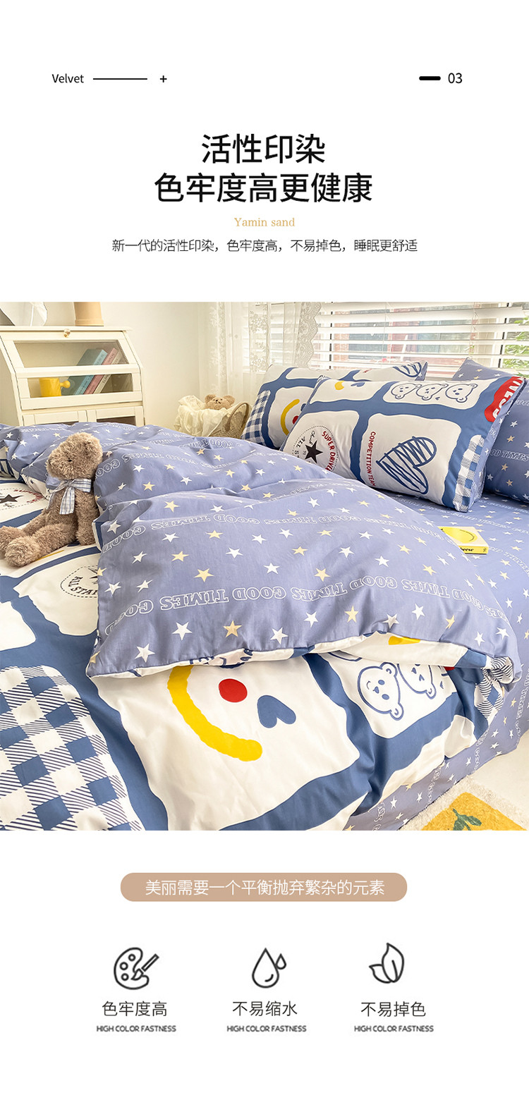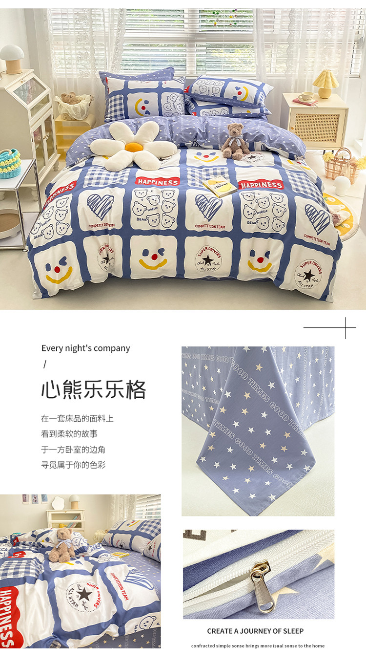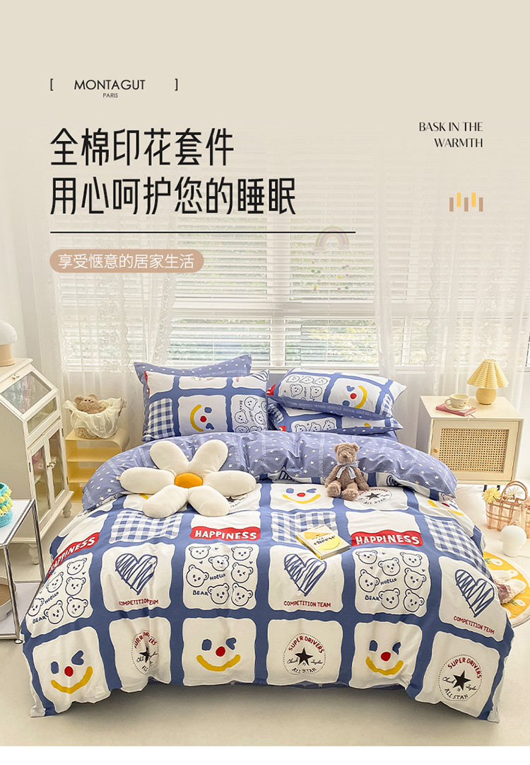 曼之夏 2022新款全棉清新印花四件套 心熊乐乐格