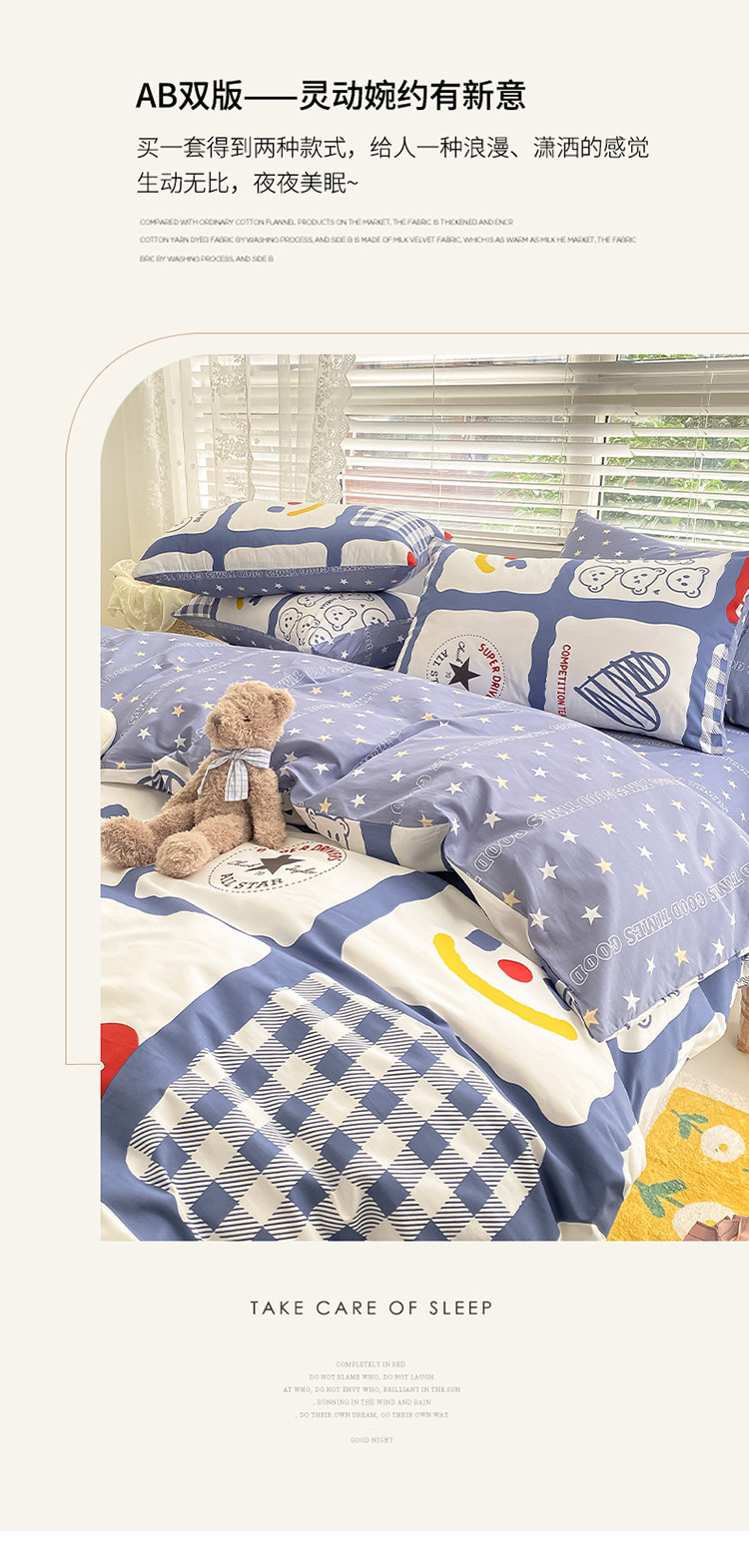 (总)曼之夏 2025新款原棉加厚磨毛印花四件套,比心,布鲁兔,春风十里,大都会,简兮,麦琪熊,麦语-灰,梦游记,眠时光,奇想,轻奢生活,塔维尔(米),甜心小熊,威斯丁,闲趣时光,意林(兰)