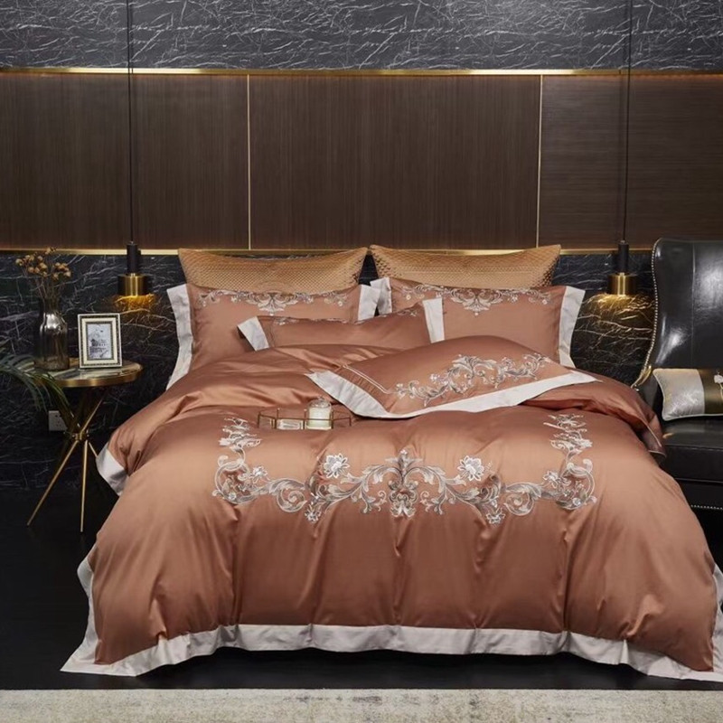 (总)玖玖爱家纺 2023新款120支贡缎长绒棉刺绣梦柔系列四件套,梦柔-香槟金,梦柔-香橙桔,梦柔-高级灰,梦柔-水蓝,梦柔-芙蓉玉