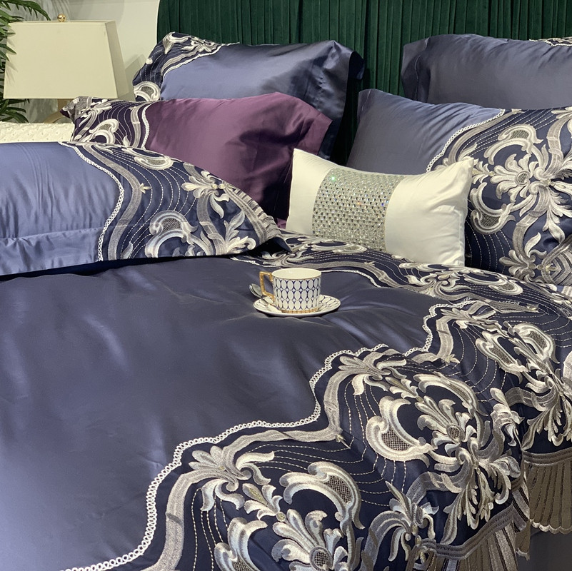 缔缦家纺 2022新款重磅真丝棉系列四件套-巴萨湖畔 深蓝