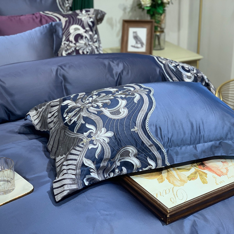 商品名称:缔缦家纺 2022新款重磅真丝棉系列四件套-巴萨湖畔 深蓝