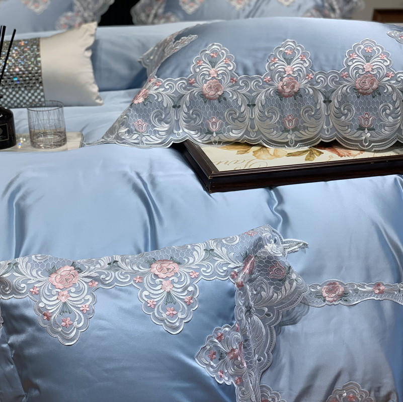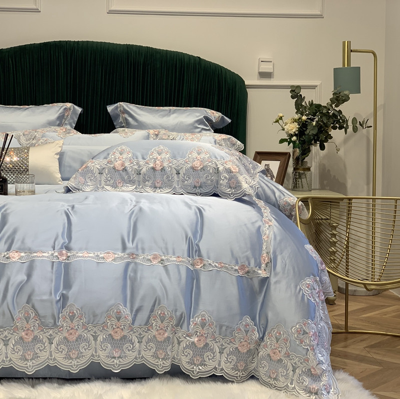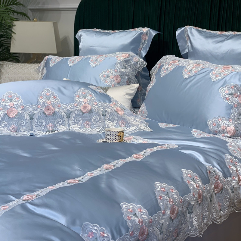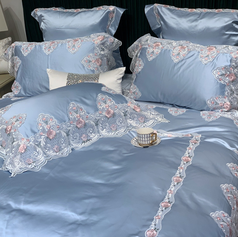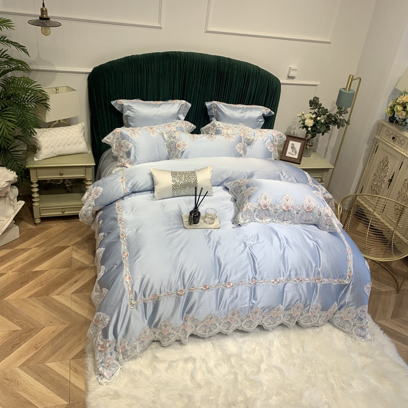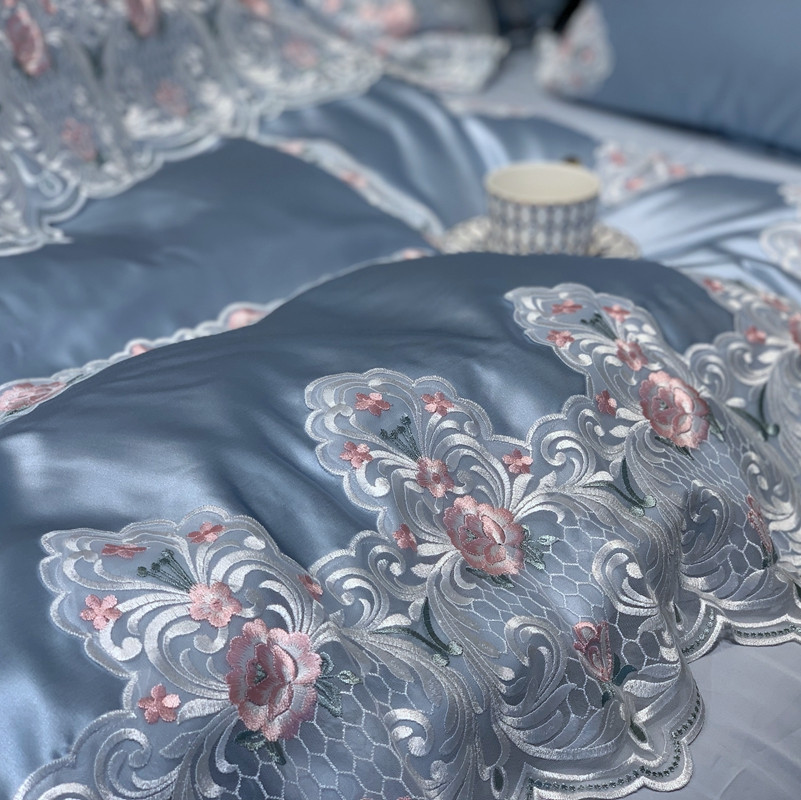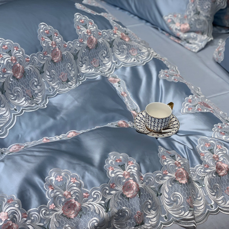 当前位置: 91家纺网 > 商品网购 > 床品套件 > 四件套 > 长绒棉四件套 > 缔缦家纺 2022新款重磅真丝棉系列四件套-蒙娜丽莎 蓝