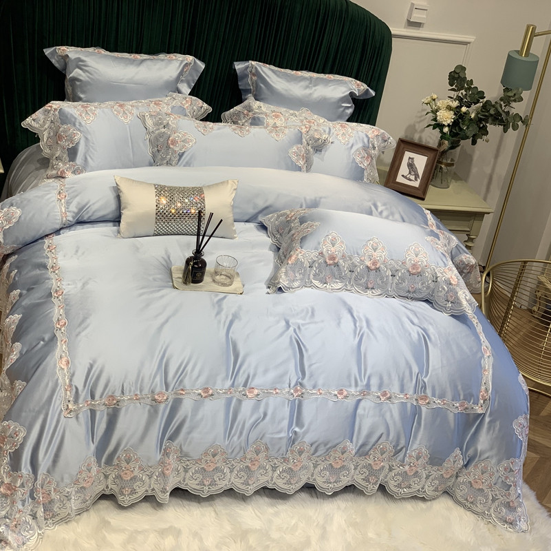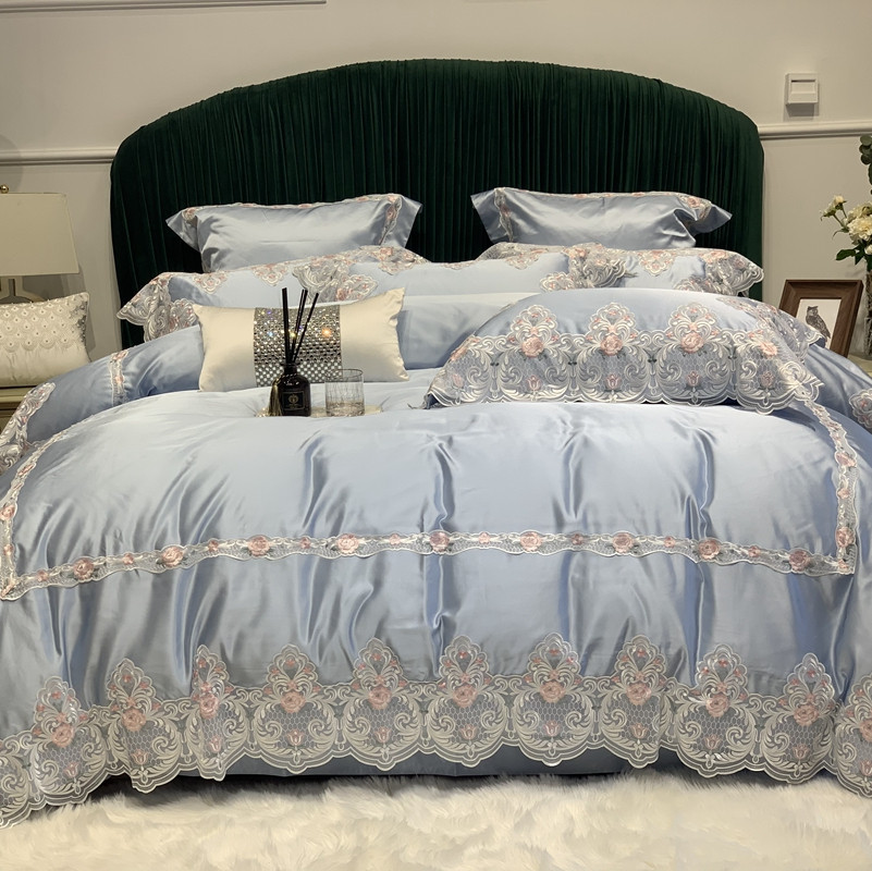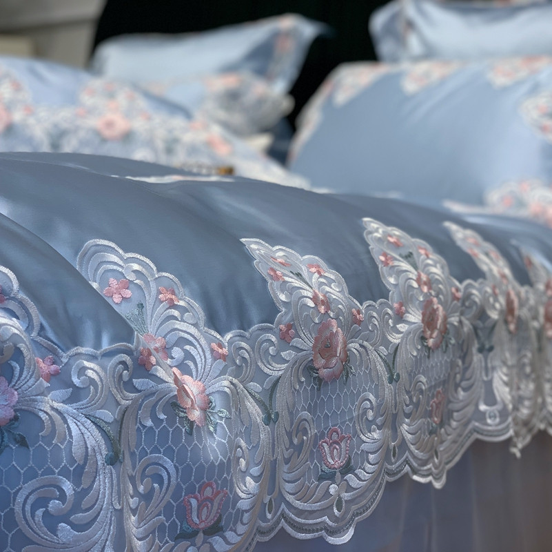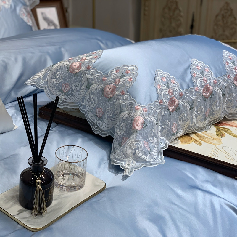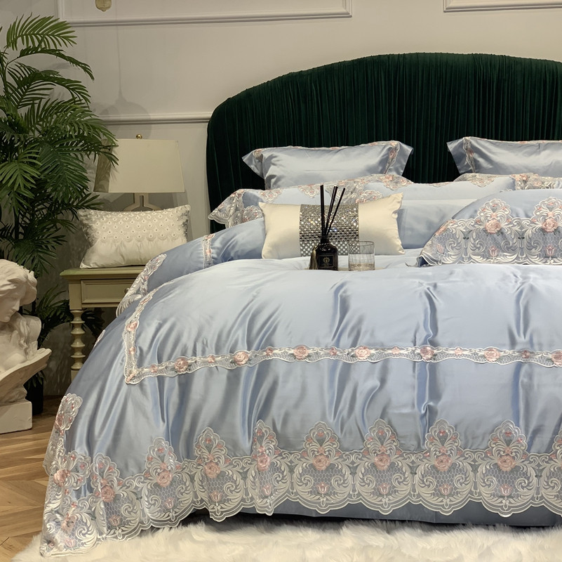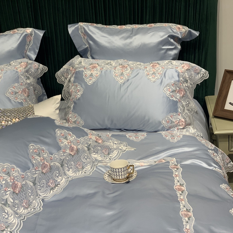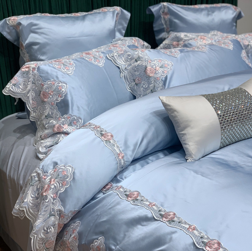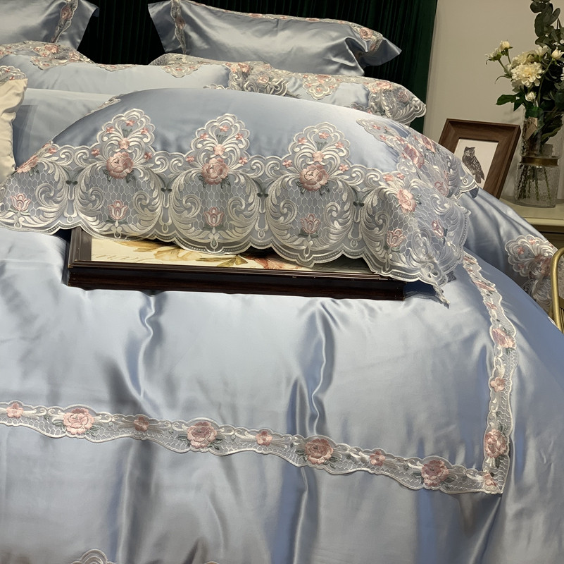 当前位置: 91家纺网 > 商品网购 > 床品套件 > 四件套 > 长绒棉四件套 > 缔缦家纺 2022新款重磅真丝棉系列四件套-蒙娜丽莎 蓝