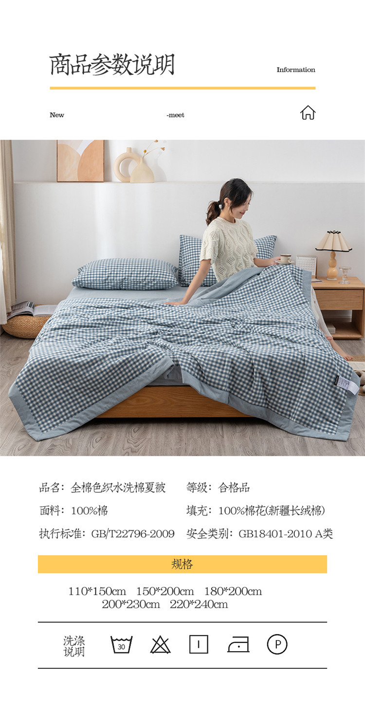 商品名称:(总)莱宁被业 2023新款a类全棉色织水洗棉夏被四件套