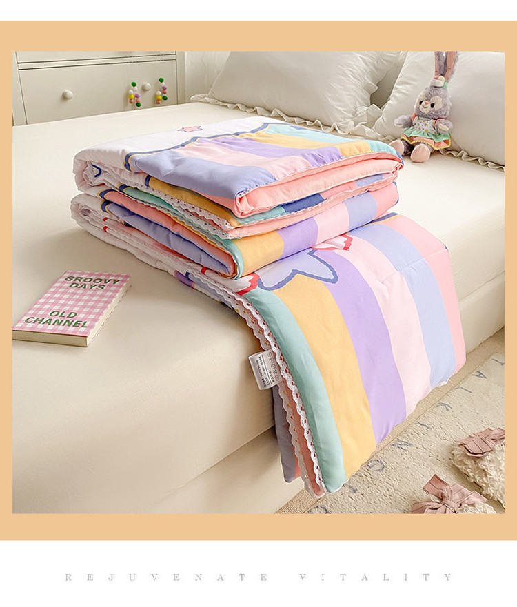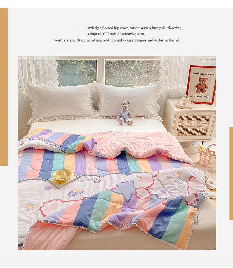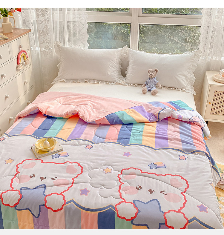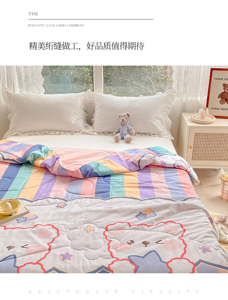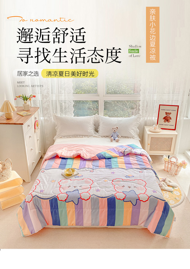 商品名称:寐居家纺 2022新款水洗棉小花边单夏被 彩虹熊