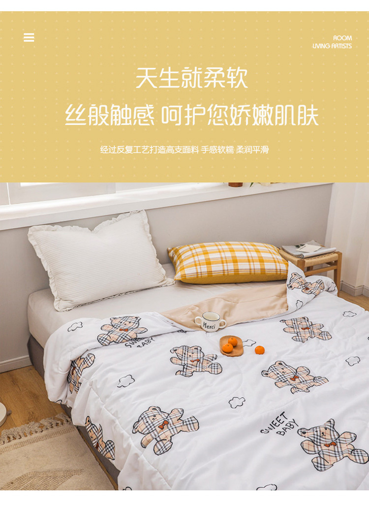 商品名称:寐居家纺 2022新款水洗棉小花边单夏被 淘气熊
