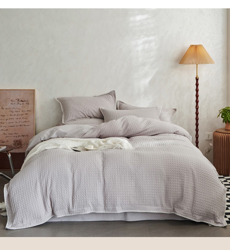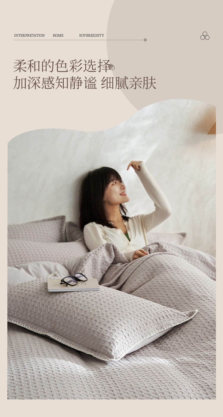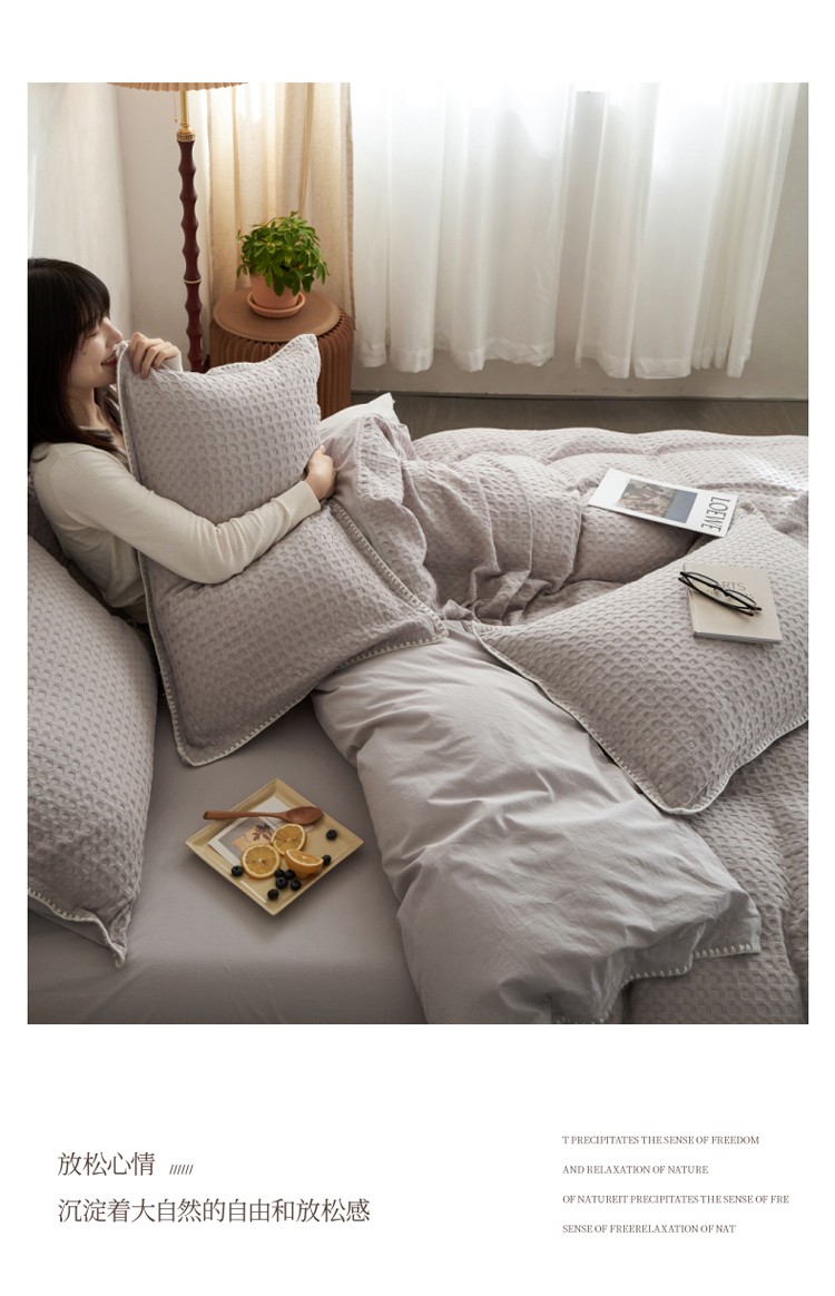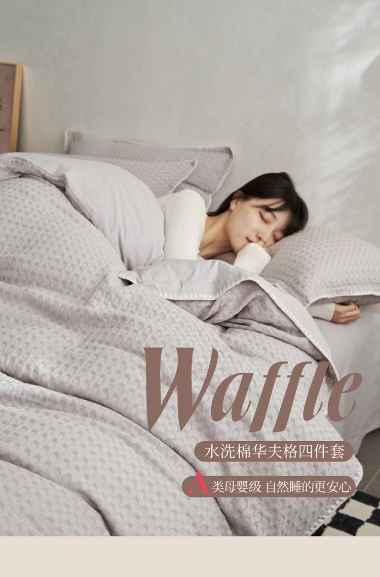 商品名称:风向标2022新款40s华夫格水洗棉四件套 华夫格-艾玉灰