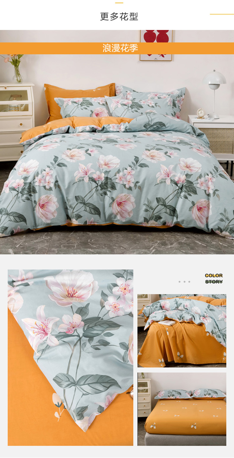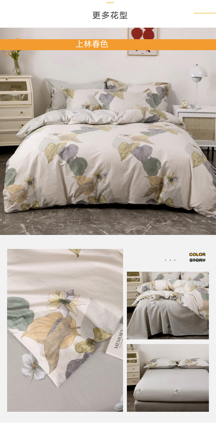 (总)星期三 2025年4月新款铂金全棉纯棉13372四件套 加微信有会员价,橙日幽香,花的旅途,花几度-绿,花佳境-咖,花枝草蔓,柔纱花影,棠影寻-粉,小雨录-紫,星际漫游