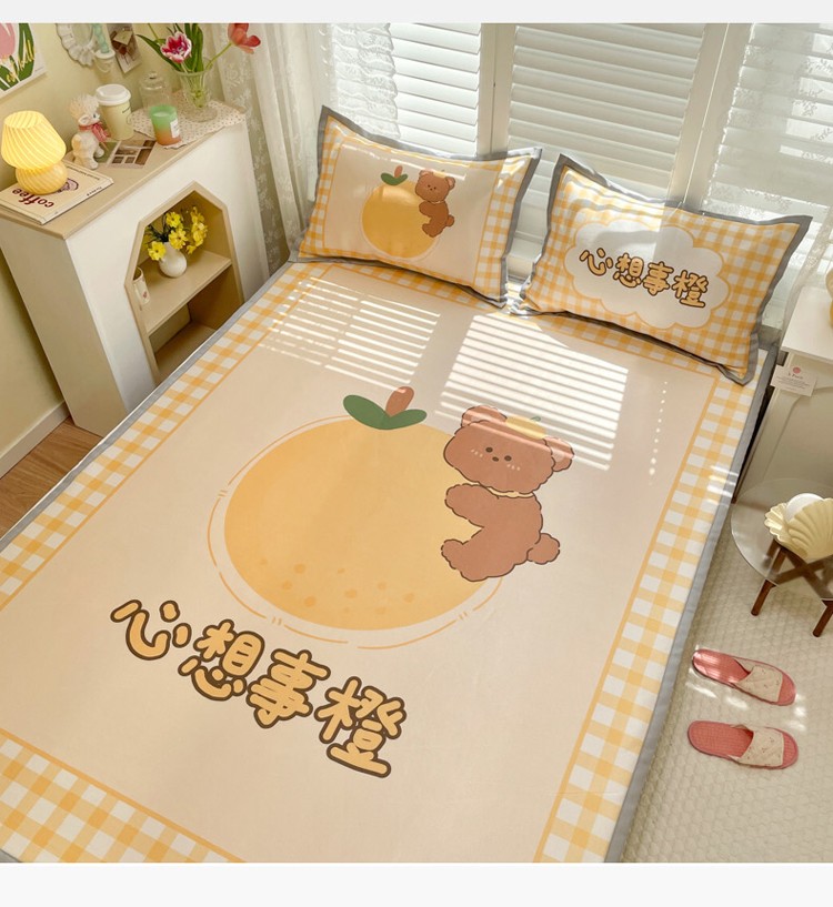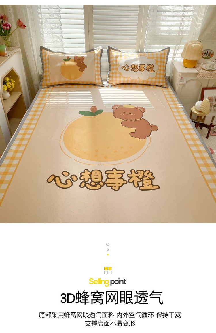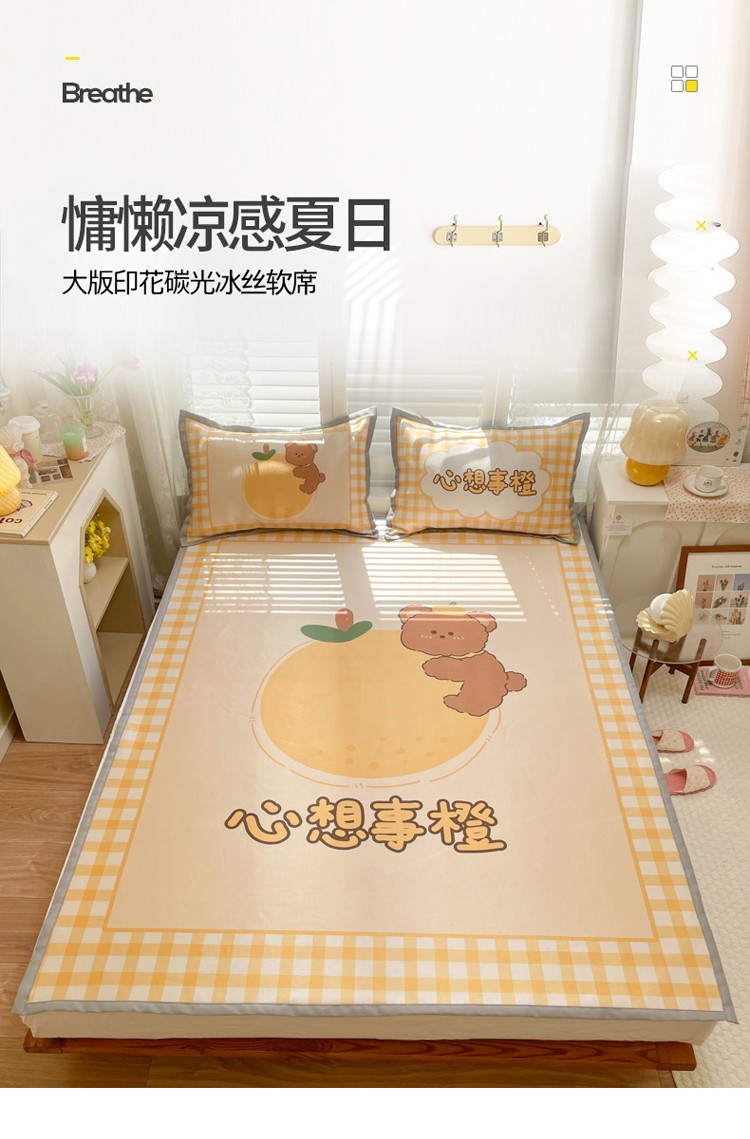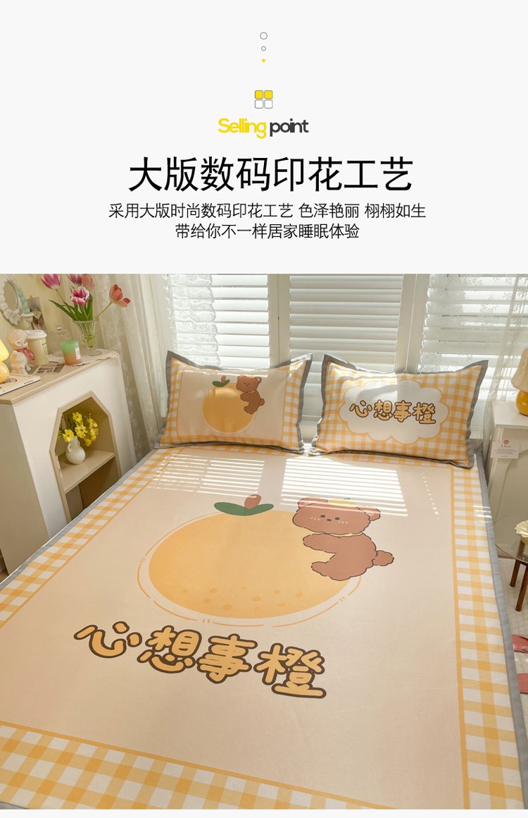 柒月家居2022大版碳光冰丝凉席 心想事橙