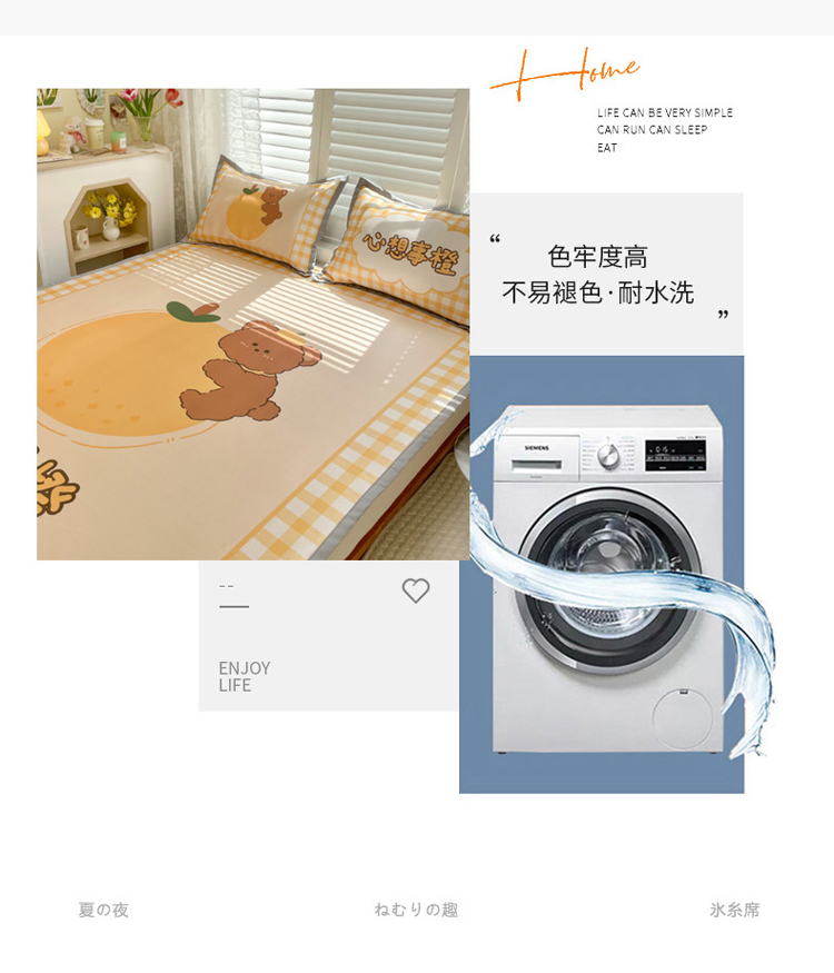 商品名称:柒月家居2022大版碳光冰丝凉席 心想事橙