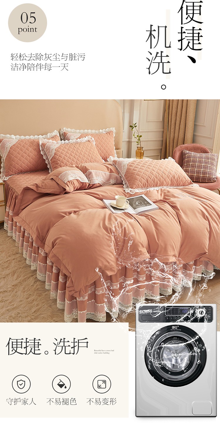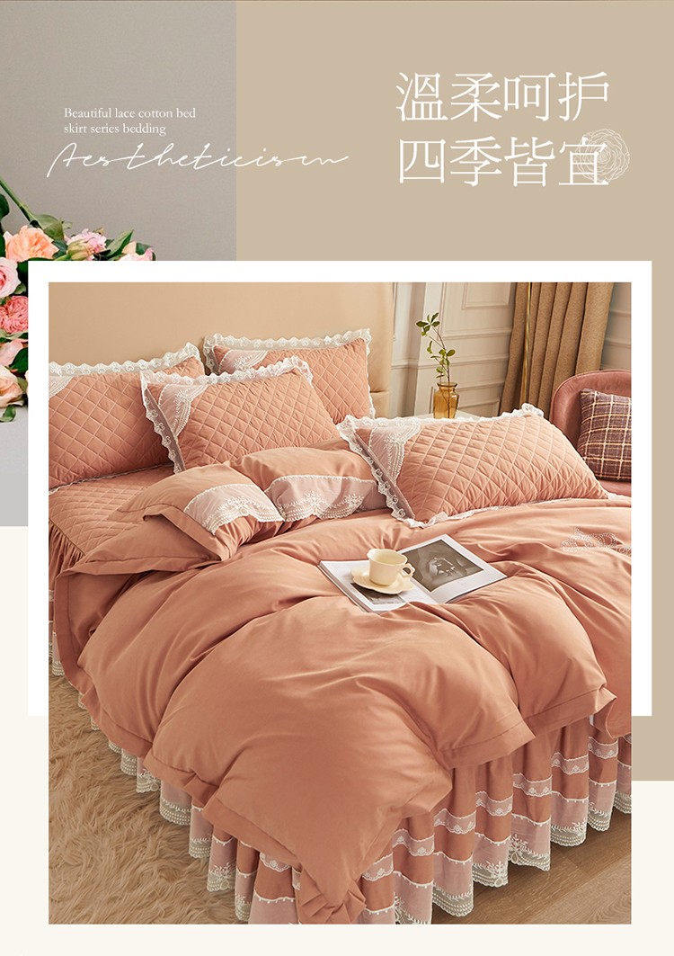 (总)网红馆 2025新款唯美蕾丝夹棉床裙四件套婉约佳人