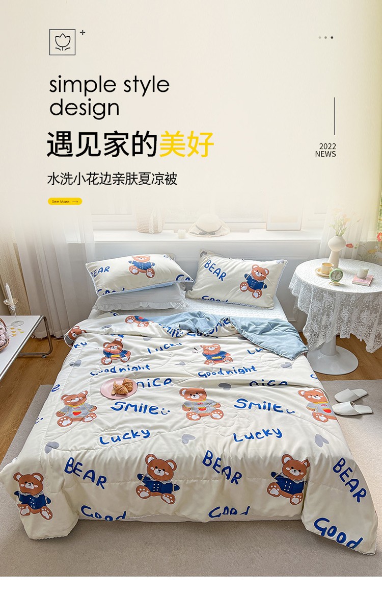 商品名称:慕尚 2025新款实拍水洗小花边夏被 超酷熊
