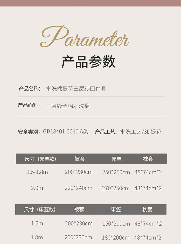 商品名称:名品优仓 2023新款纯棉水洗棉三层纱提花四件套 狡花白