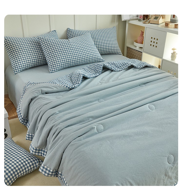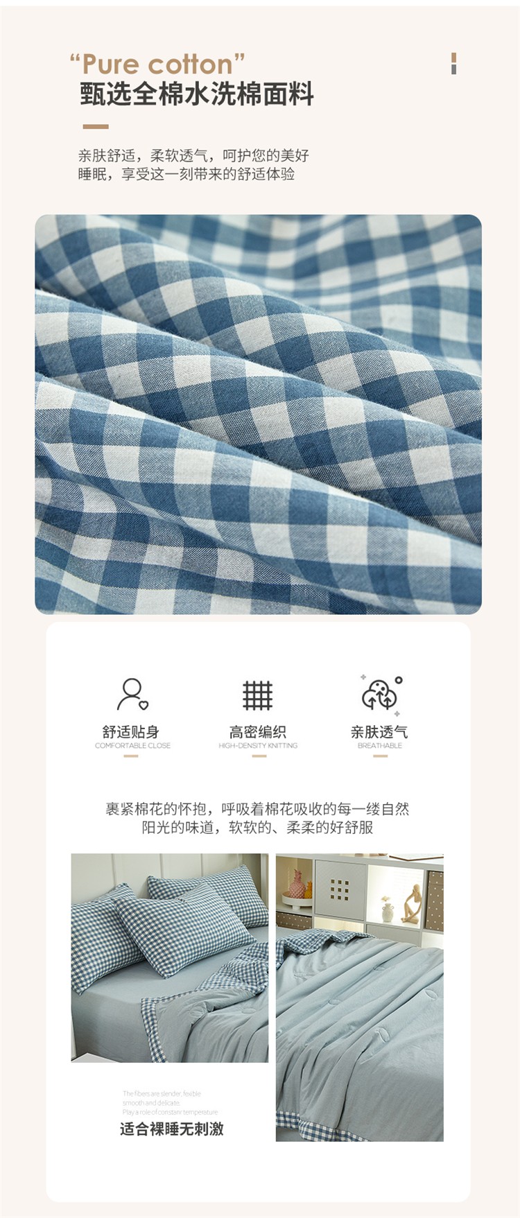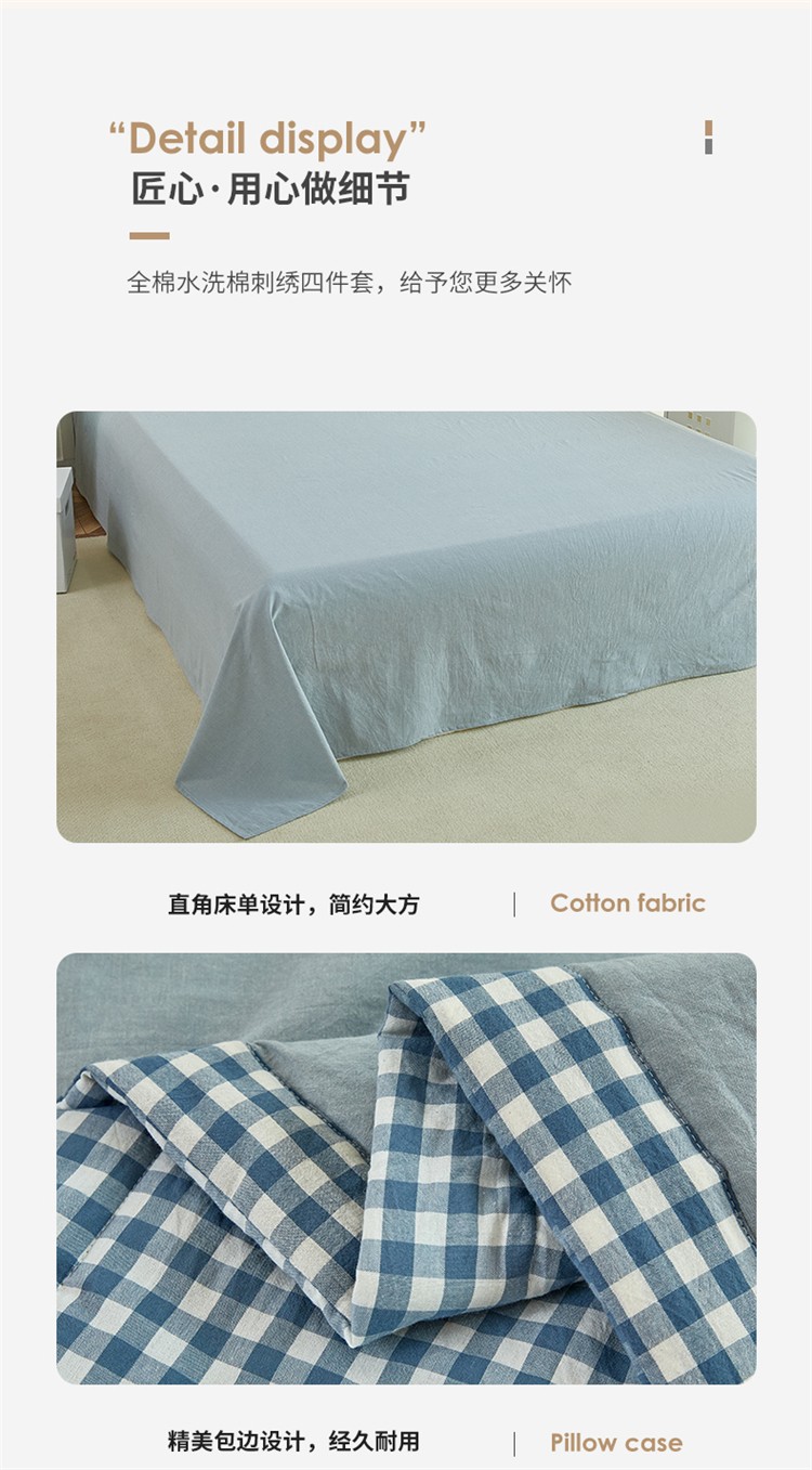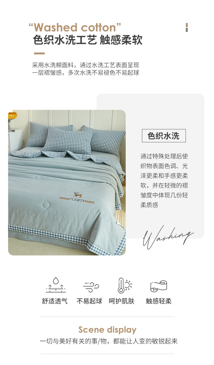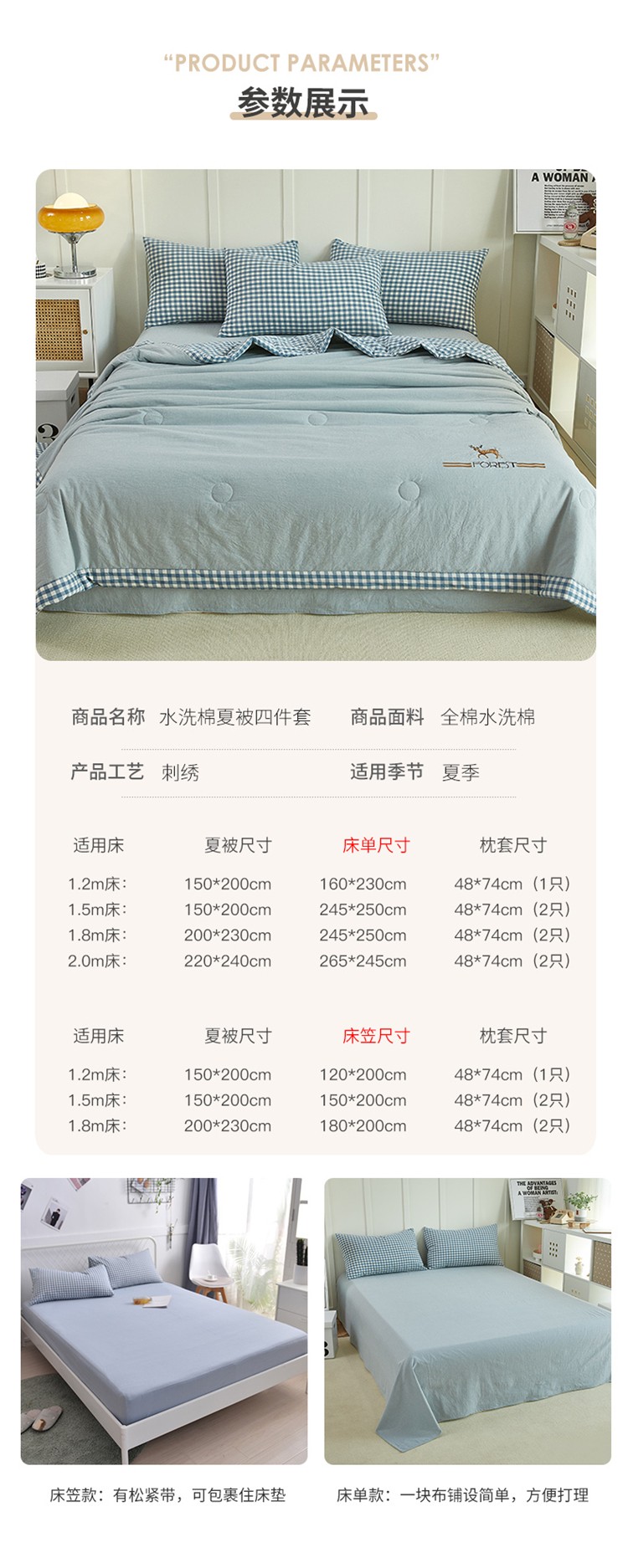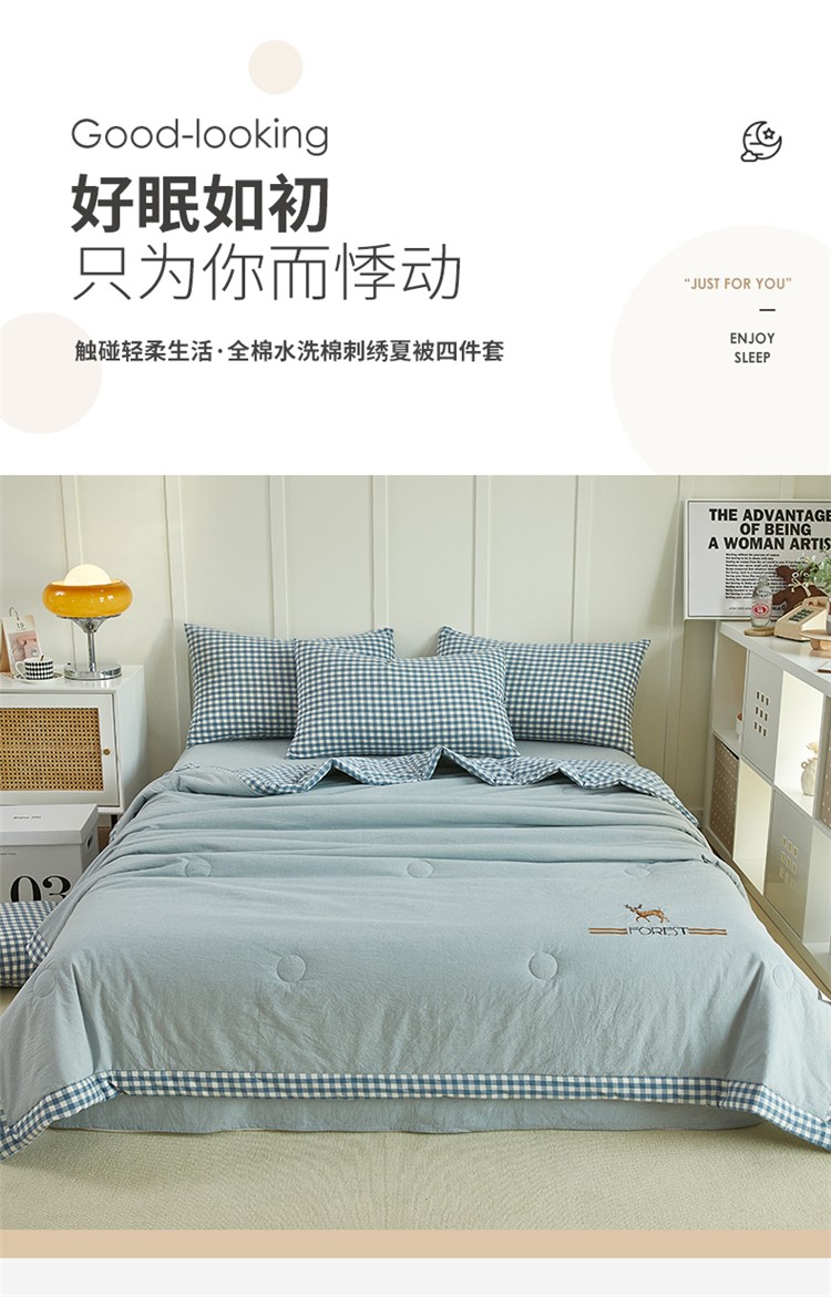 当前位置: 91家纺网 > 商品网购 > 床品套件 > 四件套 > 水洗棉四件套 > 翰轩 2022新款A类全棉色织水洗棉绣花大豆夏被四件套夏凉被 清新范