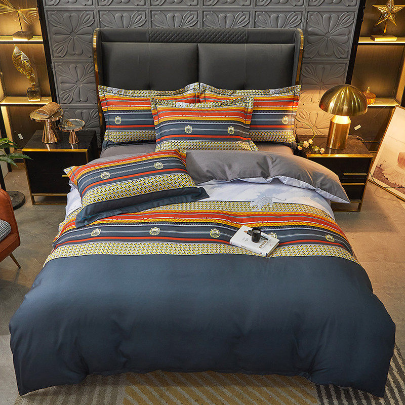 富之航 2023大版数码印花亚棉磨毛四件套 金钱豹灰色