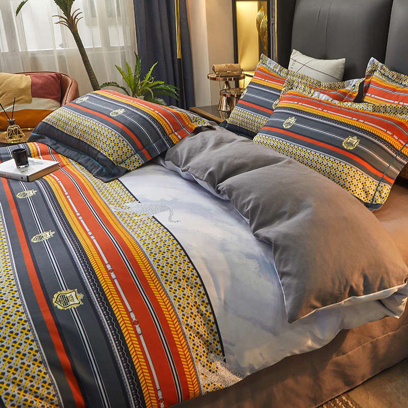 商品名称:富之航 2023大版数码印花亚棉磨毛四件套 金钱豹灰色