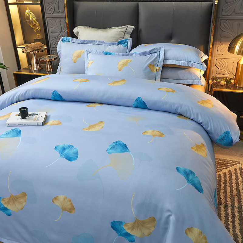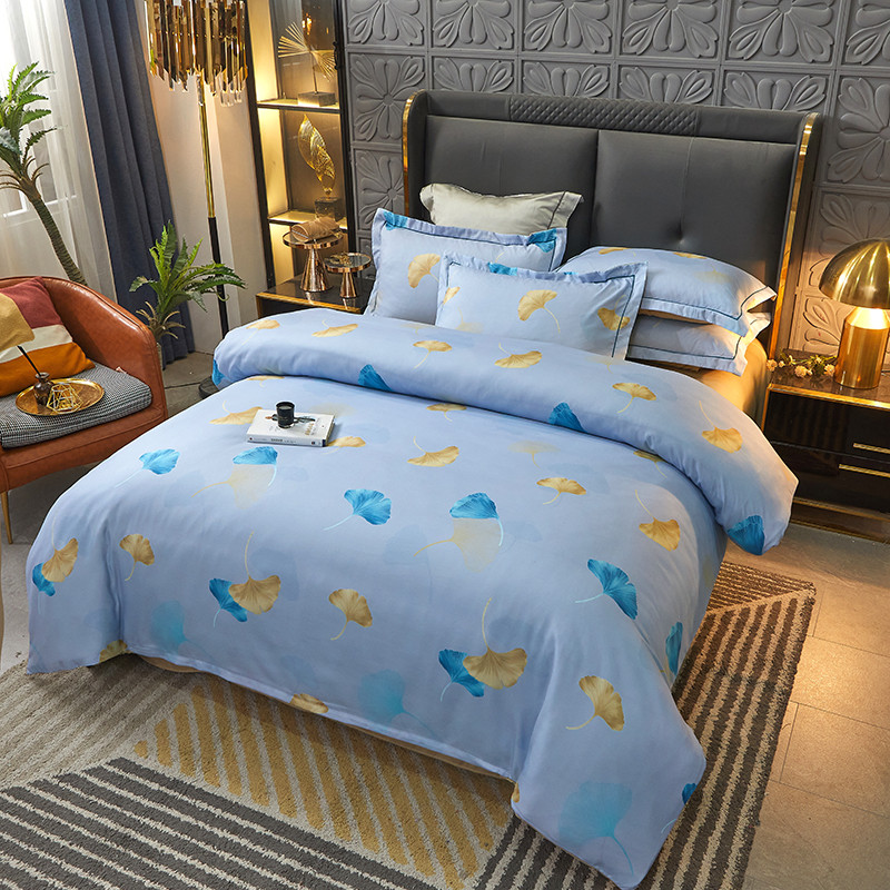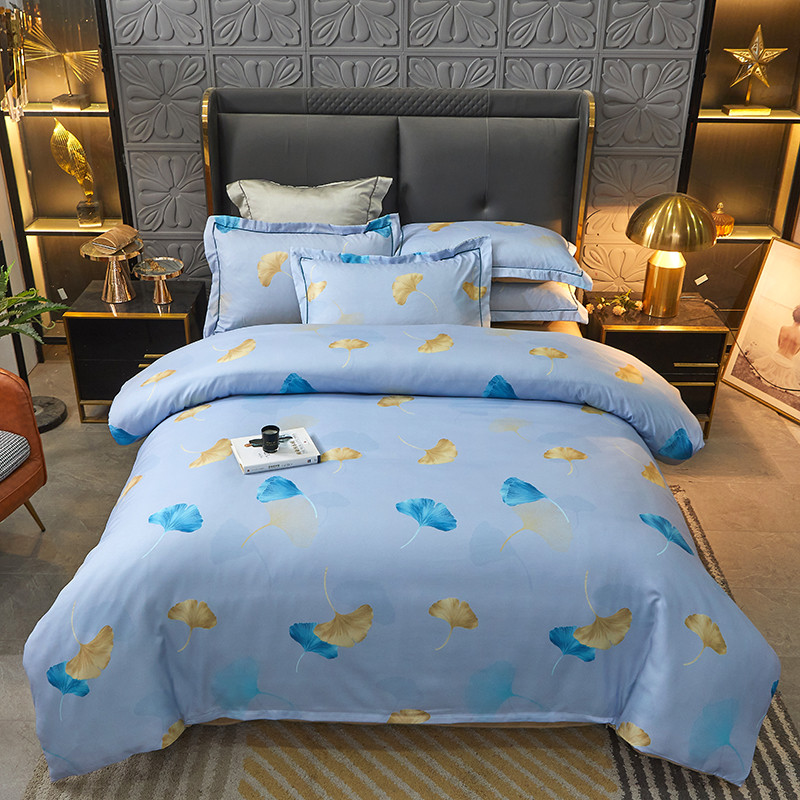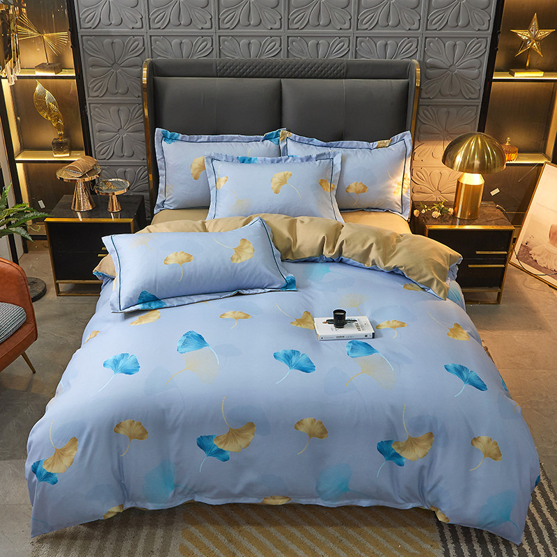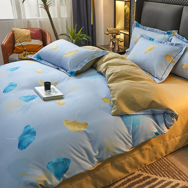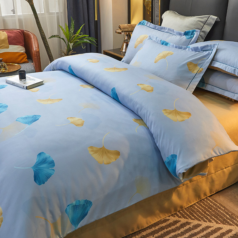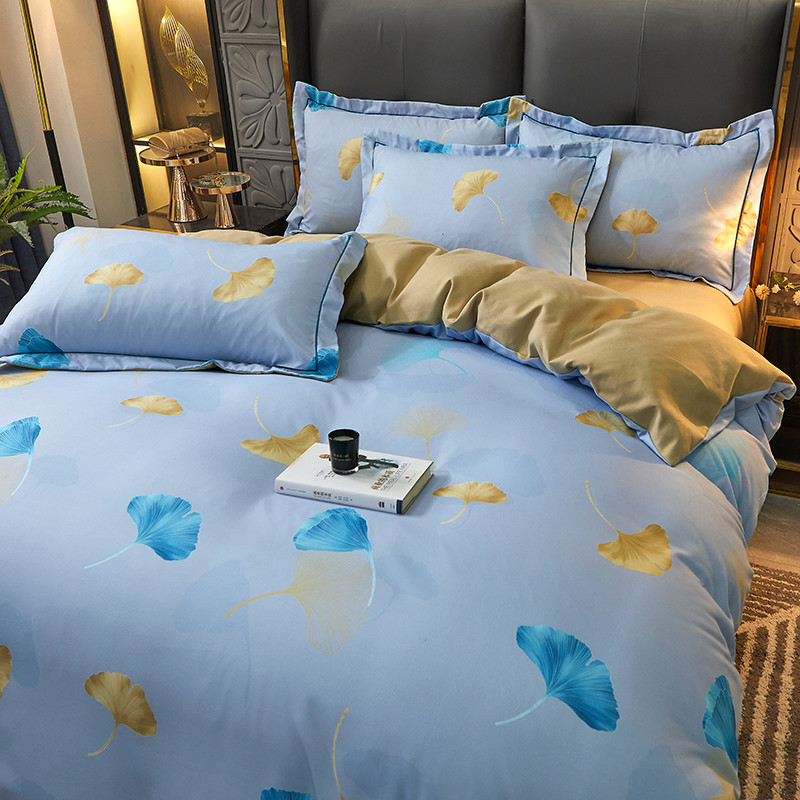 商品名称:富之航 2023大版数码印花亚棉磨毛四件套 银杏叶天空蓝