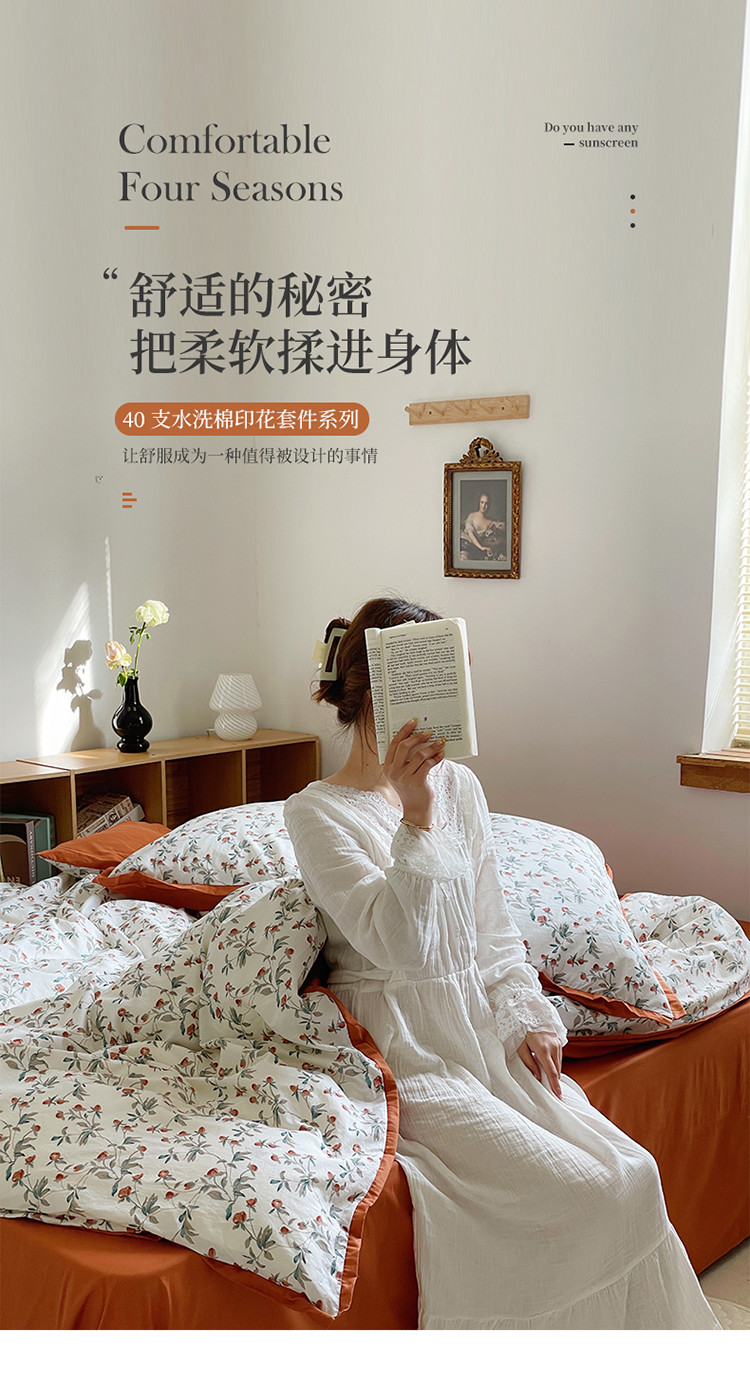 当前位置: 91家纺网 > 商品网购 > 床品套件 > 四件套 > 水洗棉四件套 > 梦享生活 2022新款小清新40支全棉水洗棉印花四件套 栀香