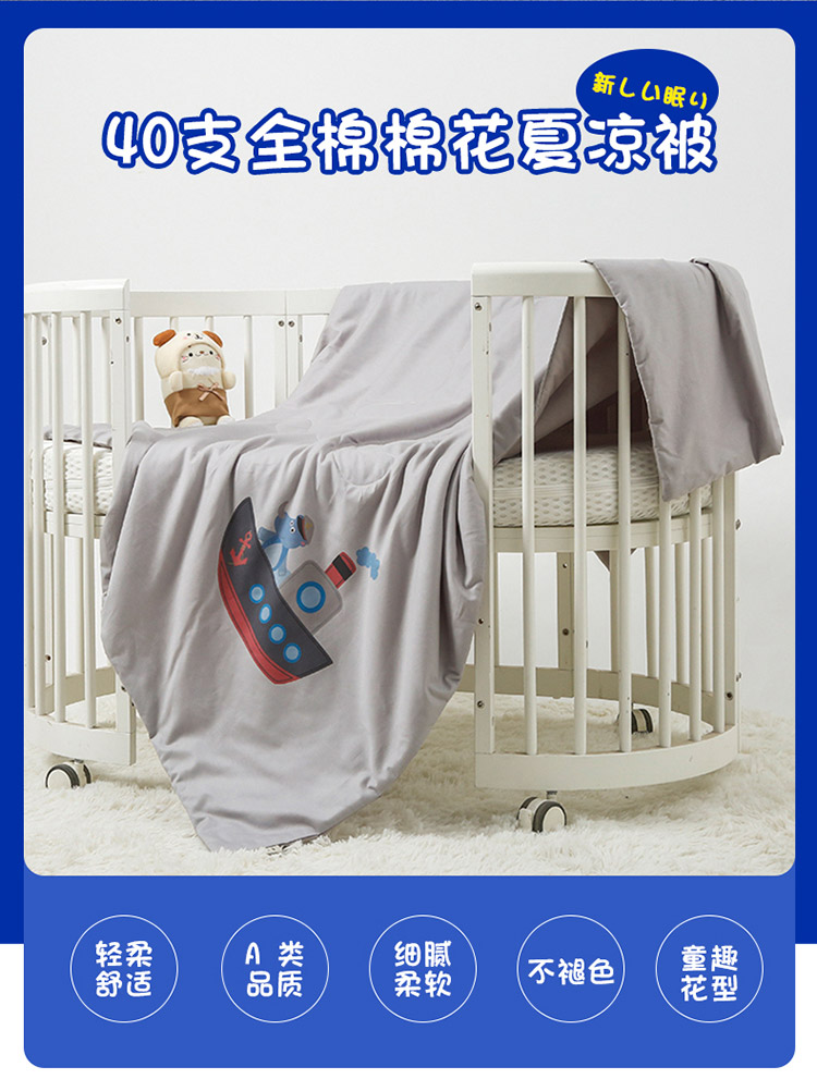 商品名称:喜多兔 2022新款40支全棉夏被-彩虹 灰色小牛强强