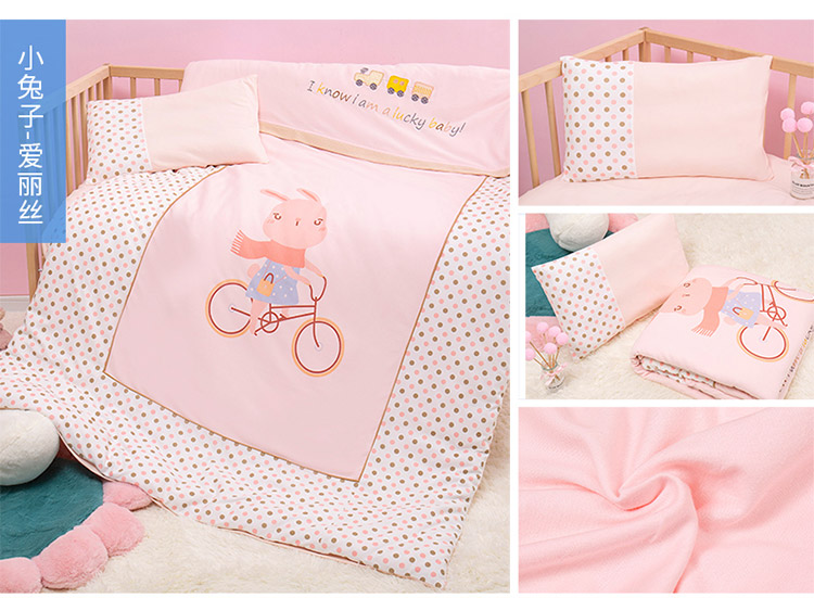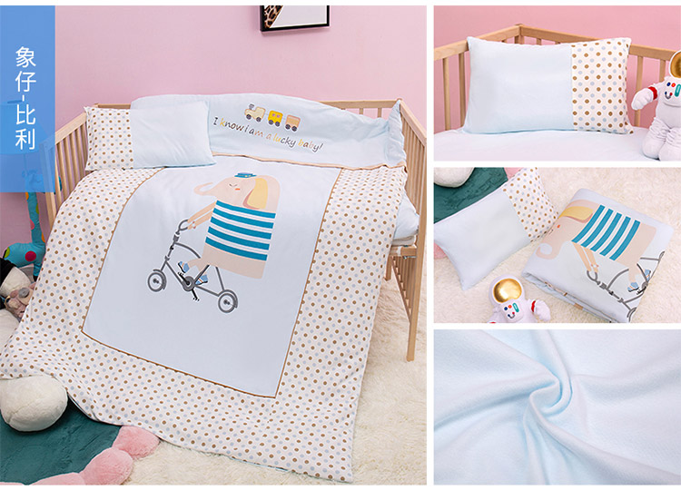 (总)喜多兔儿童家纺 2025春夏新款小软萌贴布绣纱布被,粉色软萌小兔,卡其色软萌小熊,蓝色软萌小象,绿色软萌恐龙,组合图仅供展示