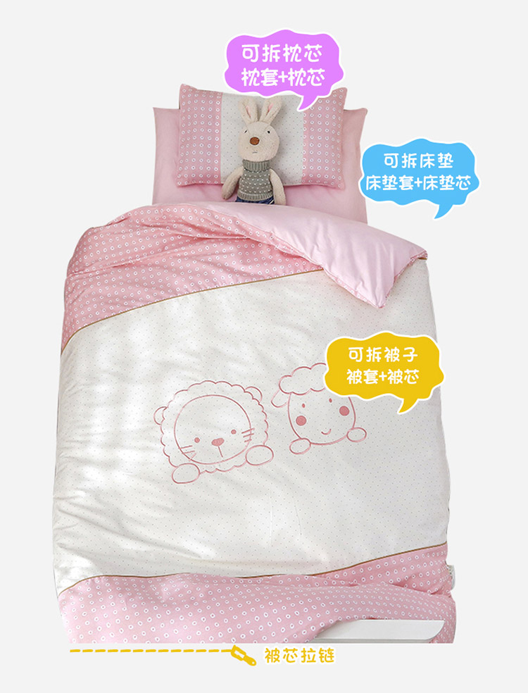 (总)喜多兔儿童家纺 2025新款小梦幻纯棉针织棉紧密纺绣花幼儿园被子三件套,组合图仅供展示,粉色梦幻小狗狗,粉色梦幻小兔,黄色梦幻小熊猫,黄色梦幻小鸭子,蓝色梦幻小狮子,蓝色梦幻小熊,绿色梦幻魔法小猫咪,绿色梦幻小恐龙