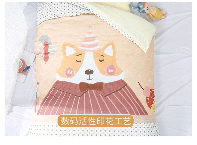 商品名称:喜多兔 2022新款全棉针织三件套床品套件-小甜点 黄色奶油小狗