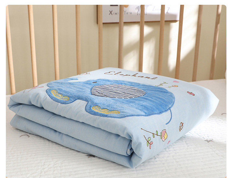 (总)喜多兔儿童家纺 2025春夏新款小软萌贴布绣纱布被,粉色软萌小兔,卡其色软萌小熊,蓝色软萌小象,绿色软萌恐龙,组合图仅供展示