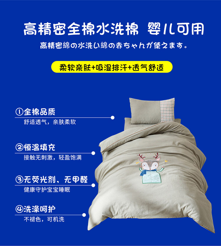 商品名称:喜多兔 2022新款小聚会高精密全棉水洗棉三件套 贝蒂小鹿