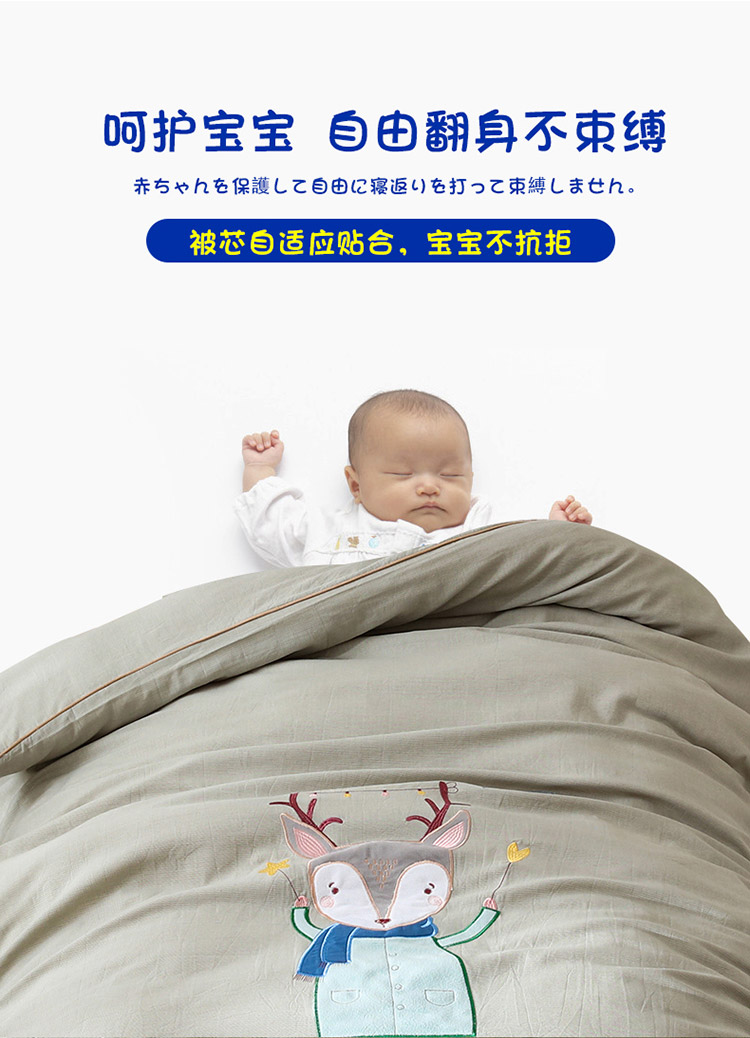 (总)喜多兔儿童家纺 2025春夏新款小软萌贴布绣纱布被,粉色软萌小兔,卡其色软萌小熊,蓝色软萌小象,绿色软萌恐龙,组合图仅供展示