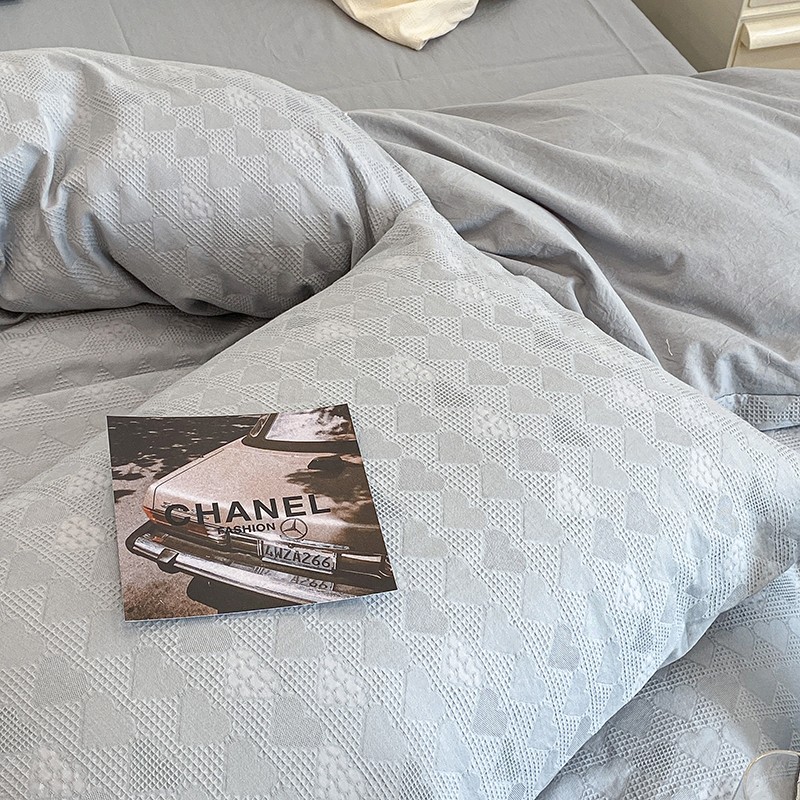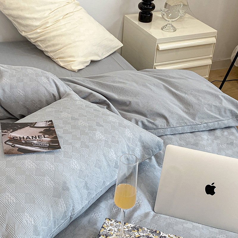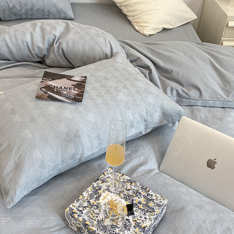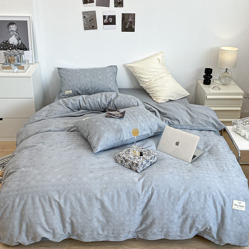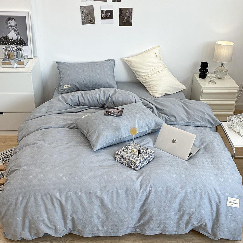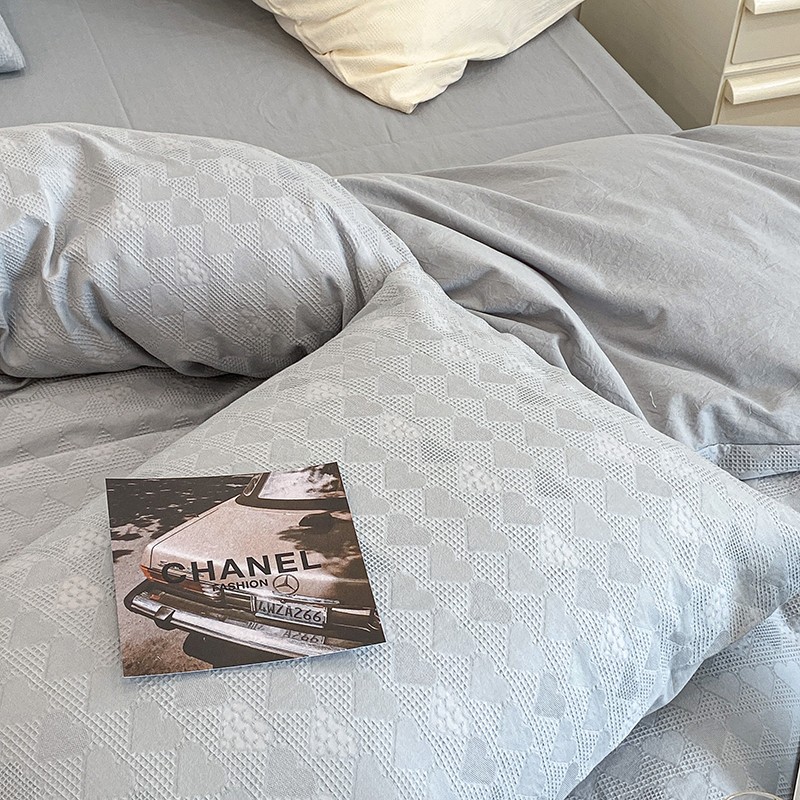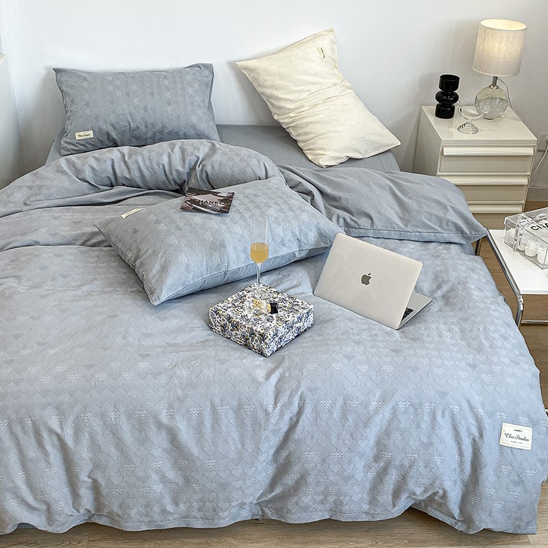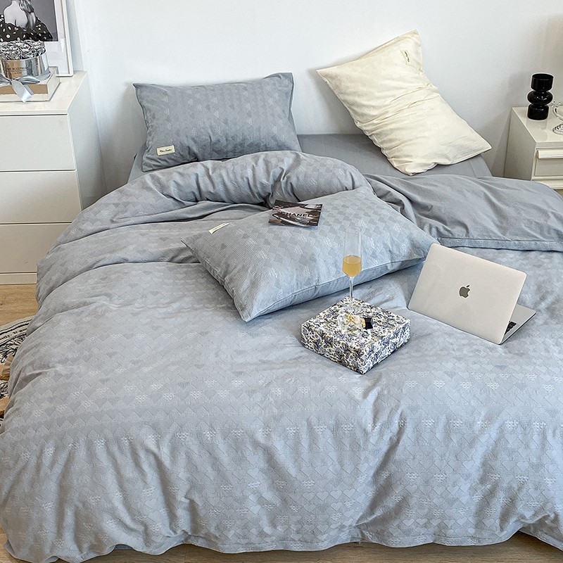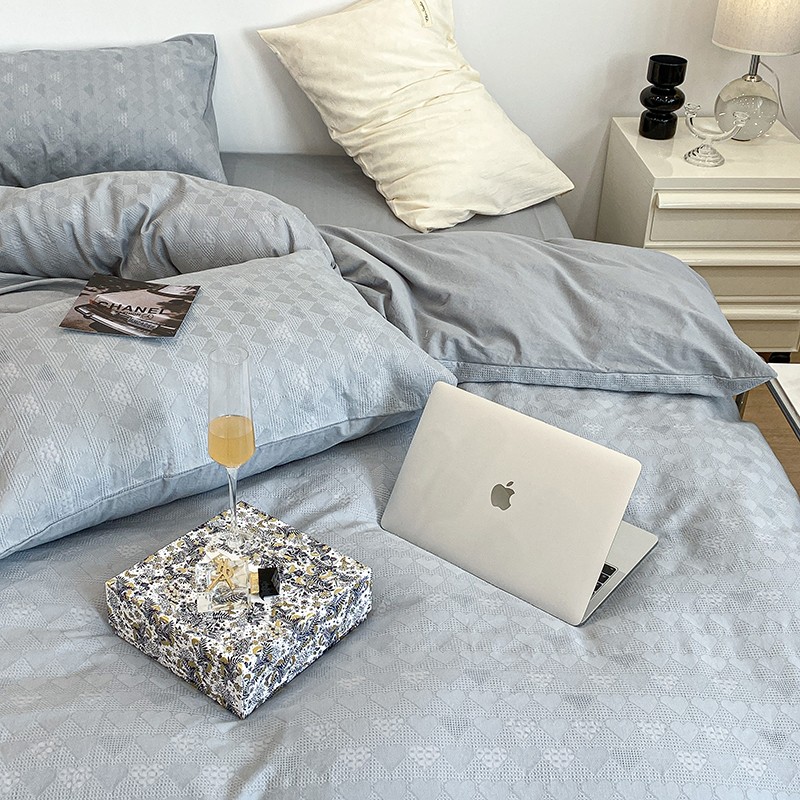昔可 2022新款60支水洗棉华夫格提花四件套拍法一 爱心雾霾蓝