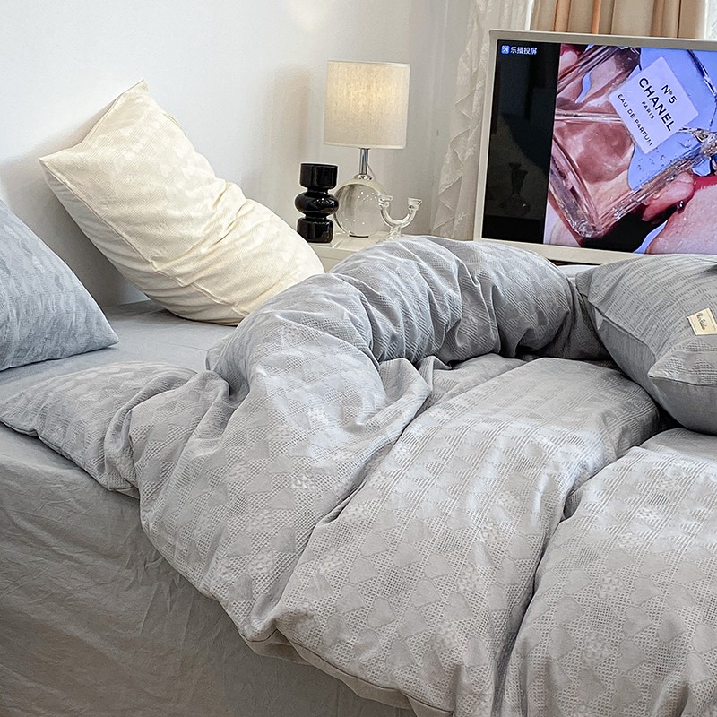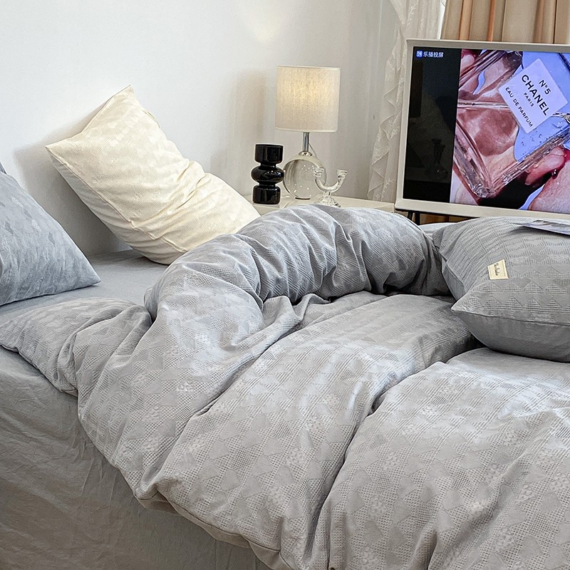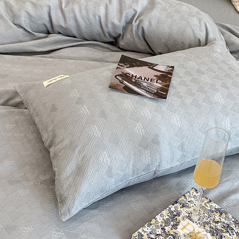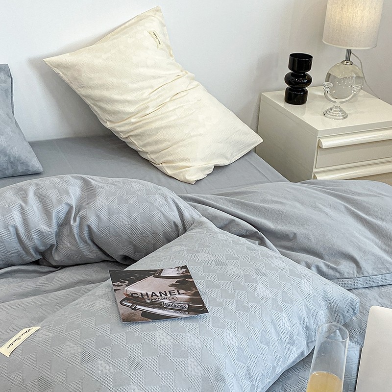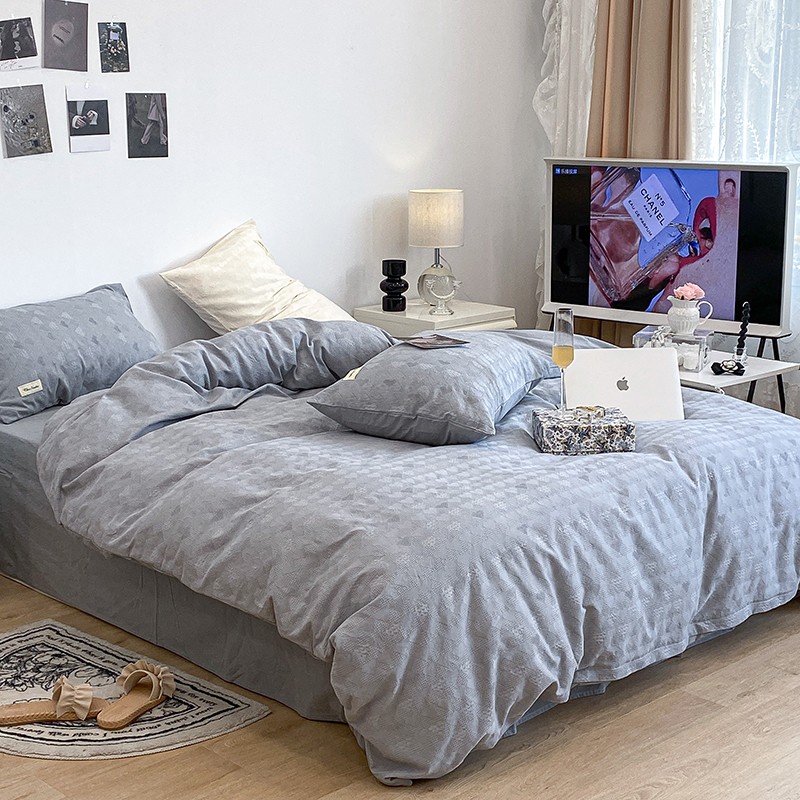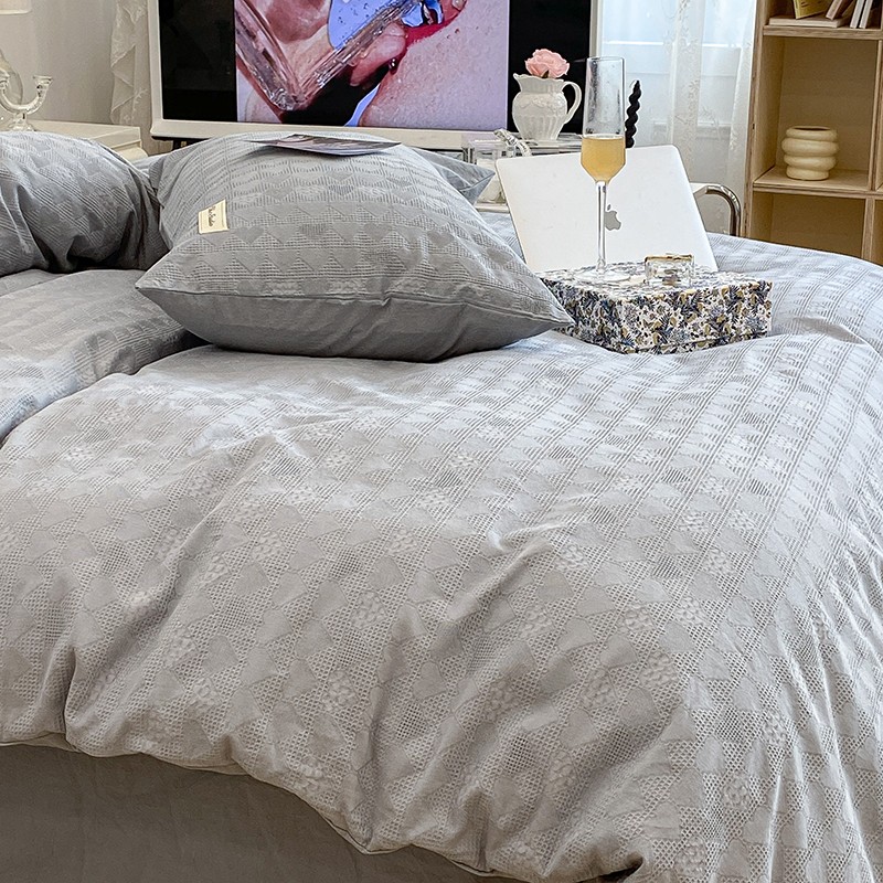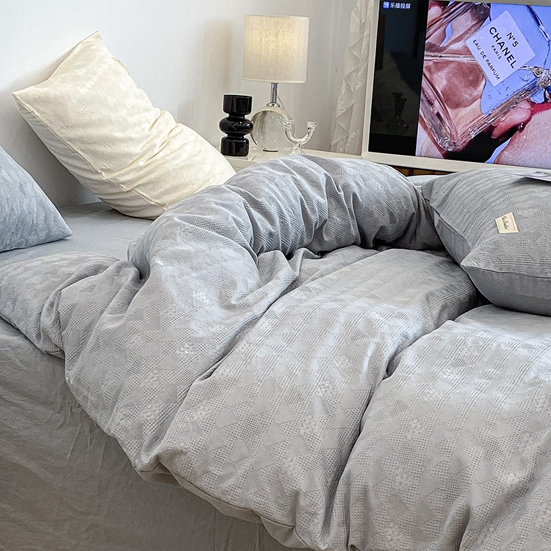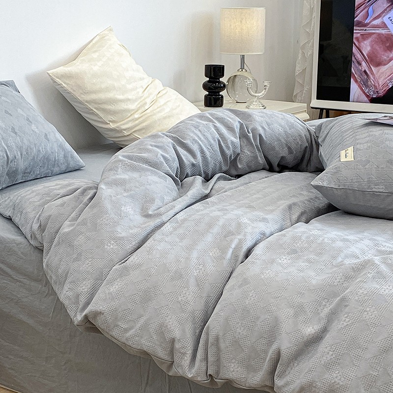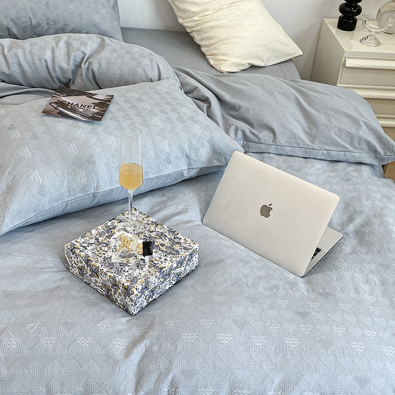 昔可 2022新款60支水洗棉华夫格提花四件套拍法一 爱心雾霾蓝