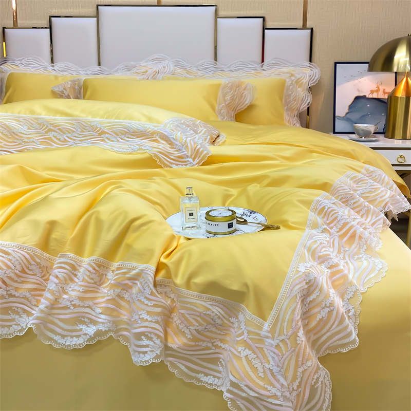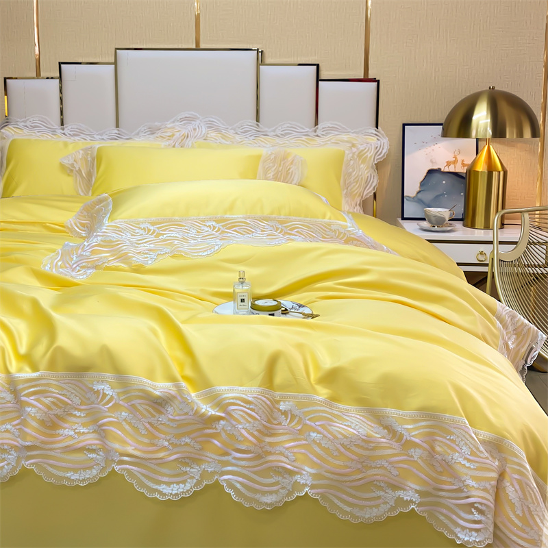 缔缦家纺 2022新款100s澳棉刺绣系列四件套-依恋 依恋-黄